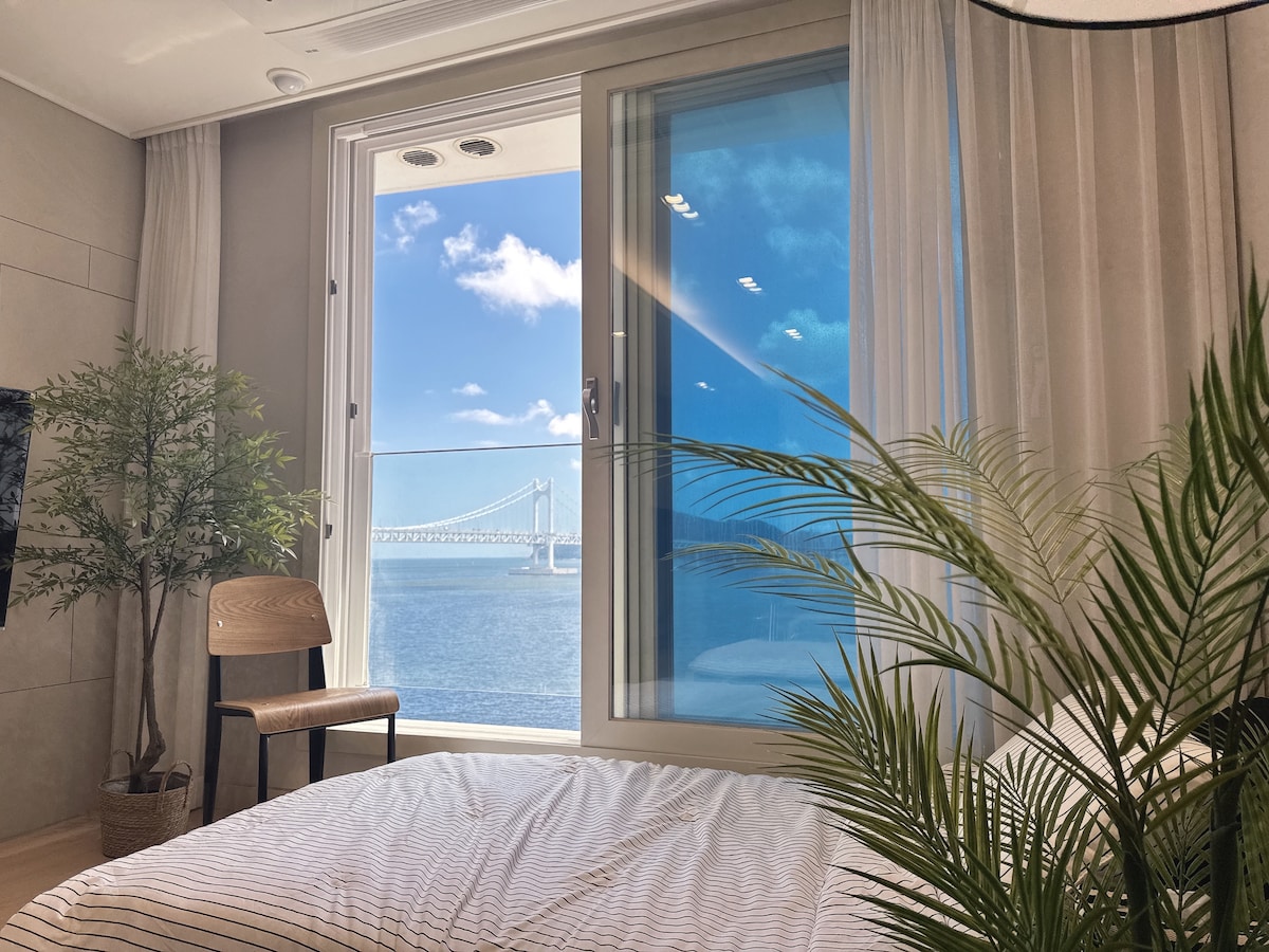 #풀오션뷰#신축#침실2+거실,침대3개#광안대교전면뷰#무료주차#20평#청결최고#미멘