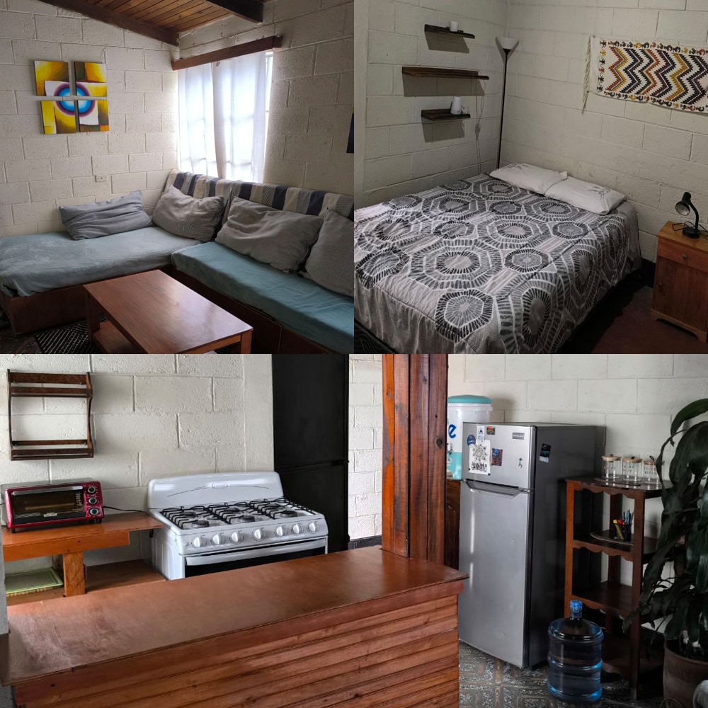 Σπίτι τύπου Loft με μεγάλο εσωτερικό πάρκινγκ και κήπο. Άνεση για έως και τρεις ταξιδιώτες ή ένα ζευγάρι με μικρά παιδιά και τα κατοικίδιά σας, τα οποία θα αντιμετωπίσουμε επίσης ως επισκέπτες. Σε 3 λεπτά θα βρείτε την Inter plaza Xela και το Futeca Gym. Επίσης πολύ κοντά στο γενικό νοσοκομείο και στο La Torre. Σε μια ήσυχη γειτονιά, θα βρείτε καταστήματα, φαρμακείο, αρτοποιείο, κρεοπωλείο, μικρές αγορές και ταχυδρομείο. Χωρίς περίπλοκο πρωτόκολλο άφιξης και η οικοδέσποινά σας θα είναι σε ετοιμότητα για οτιδήποτε χρειάζεστε.