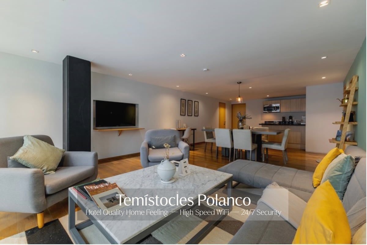Η δουλειά συναντά το στυλ στην καρδιά του Polanco, λίγα βήματα από τη Λεωφόρο Masaryk και το Πάρκο Lincoln. Αυτό το εκλεπτυσμένο διαμέρισμα προσφέρει πλήρως εξοπλισμένη κουζίνα, Wi-Fi υψηλής ταχύτητας, Smart TV και έναν ήσυχο χώρο εργασίας. Περιτριγυρισμένοι από εταιρικά γραφεία, κορυφαία εστιατόρια και πολιτιστικά αξιοθέατα, βρίσκεστε σε ιδανική τοποθεσία για επαγγελματικά γεύματα και φαγητό μετά το τέλος της εργάσιμης ημέρας. Απολαύστε μια εξαιρετική, παραγωγική διαμονή με την άνεση και την ευκολία που χρειάζεστε στην κορυφαία επιχειρηματική περιοχή της Πόλης του Μεξικού.
