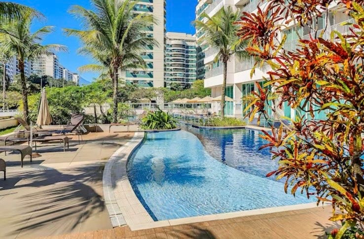 APARTAMENTO DE 91 M2 - 3 quartos: 1 suíte casal , 2 quartos de solteiro, 6 camas e 2 colchões extras. - 2 banheiros; - Cozinha completa; - Lavanderia com maquina de levar; - Sala com Smart TV e Sofá; - Roupa de cama, mesa e banho. - Espaçosa varanda com belíssima vista para a Lagoa da Barra e para a Pedra da Gávea; - Parque Aquático; - Restaurante Bar; - Padaria/mini-mercado - Quadra de Areia, Tênis, -Futsal e Campo Sintético; - Salão de jogos - SPA/ofurô/sauna - Salão de beleza - Cinema