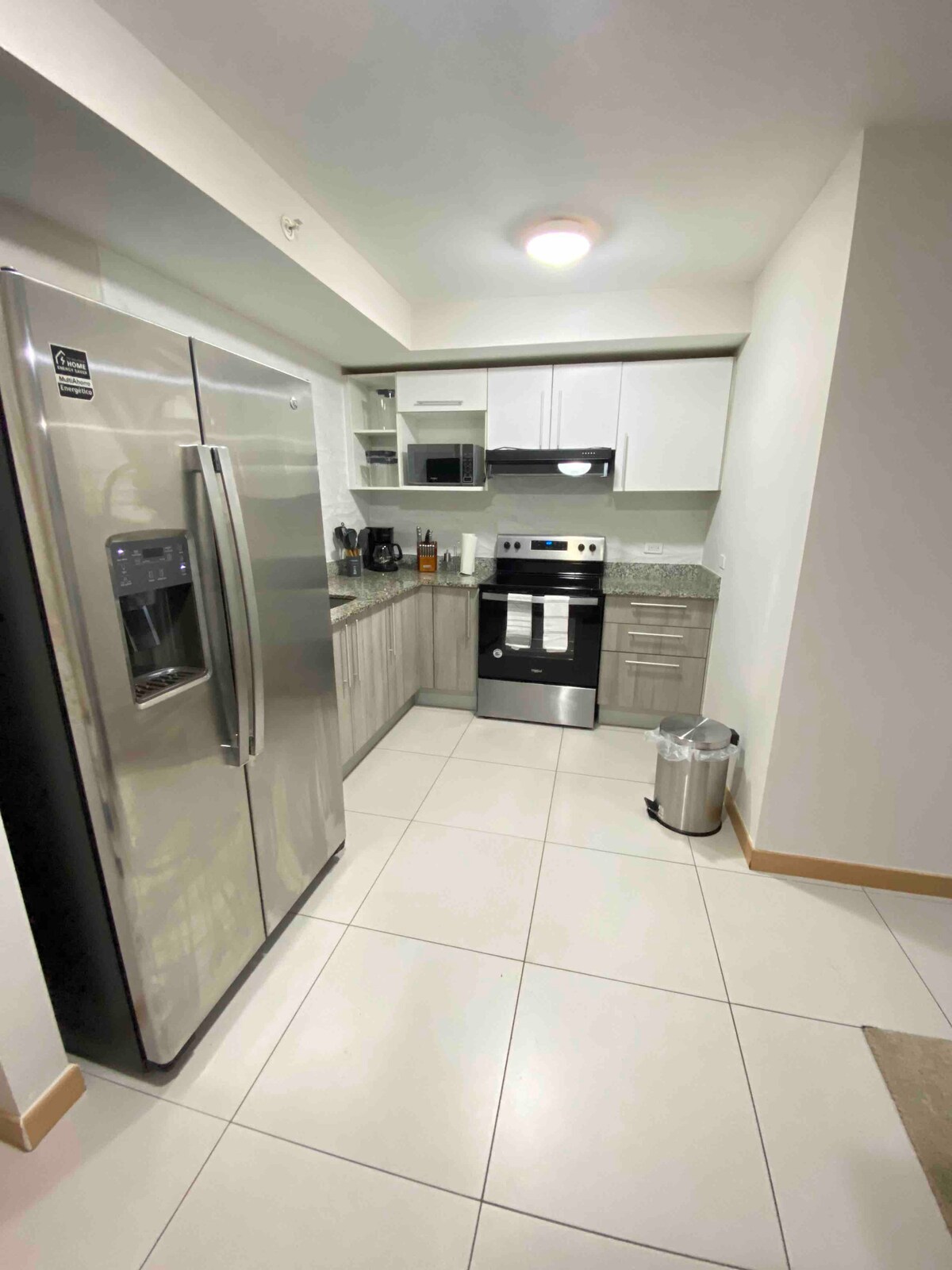 The condo has 2 bedrooms, a living room, dining room, kitchen, 2 bathrooms, and is located 2 miles from SJO Airport. Additionally, you’ll be just 2 minutes away from City Mall and Walmart. • Airport Transfer Available (at an additional cost) • 24/7 security • Pool • Gym • Coworking space • High-speed internet • Clubhouse • Parking You'll find in the apartment coffee, a fully equipped kitchen, AC units (in the bedrooms and living room), TV, king-size bed, and full-size bed.
