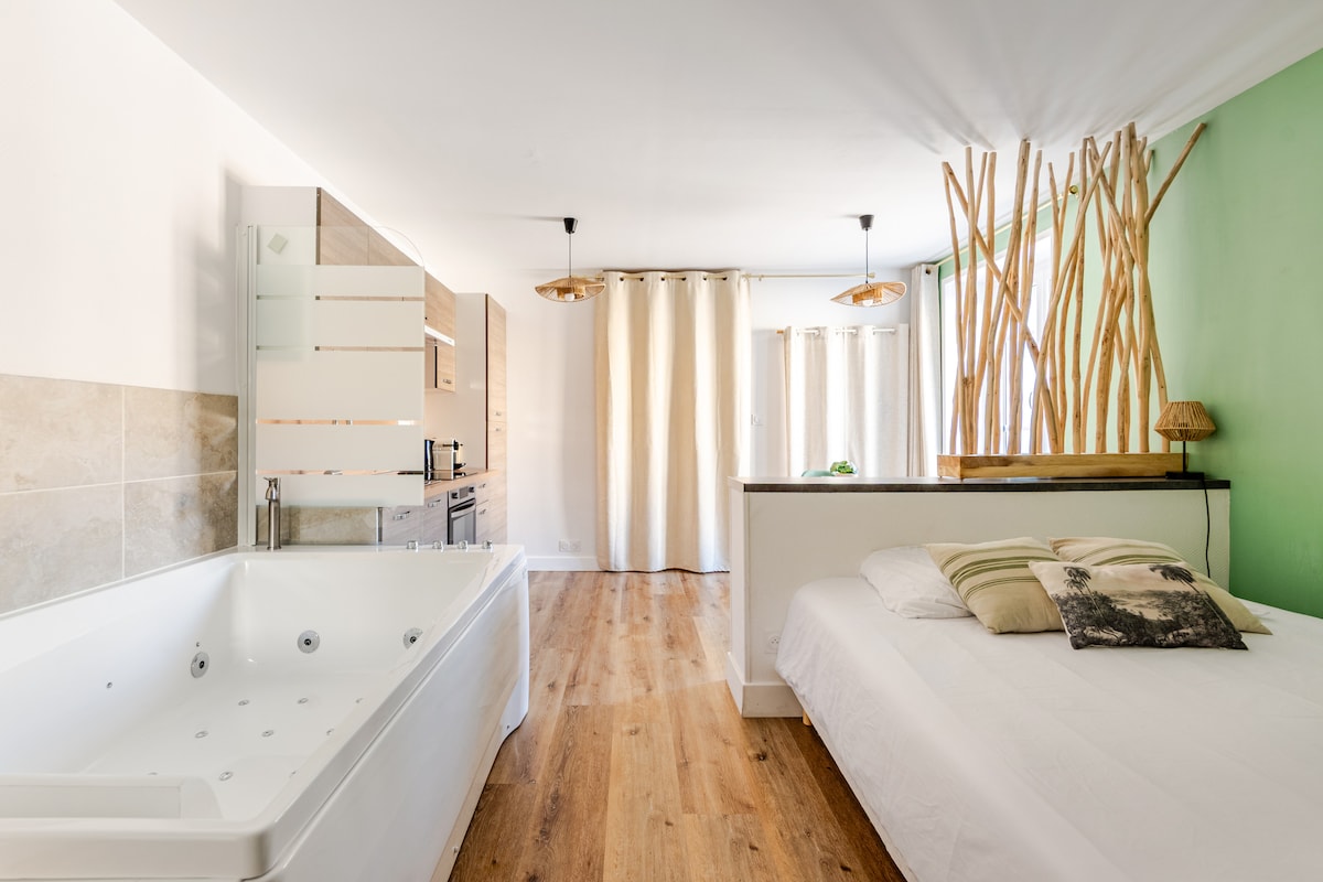 ✨ Απολαύστε μια μοναδική εμπειρία σε αυτό το άνετο στούντιο με ένα διπλό μπάνιο σπα, ιδανικό για μια ρομαντική απόδραση. Βρίσκεται κοντά στο Futuroscope και κοντά στο Πουατιέ. • 🛁 Ιδιωτικό διπλό μπάνιο σπα: μια σπάνια πολυτέλεια που μπορείτε να απολαύσετε ως ζευγάρι • Ιδανικός🍷 χώρος για ένα ρομαντικό Σαββατοκύριακο ή μια βραδιά ευεξίας • Εύκολο🔑 check-in χωρίς παρουσία οικοδεσπότη, 24 ώρες το 24ωρο 👉 Ιδανικό για μια ρομαντική διαμονή, μια χαλαρωτική βραδιά ή μια ρομαντική έκπληξη κοντά στο Πουατιέ.