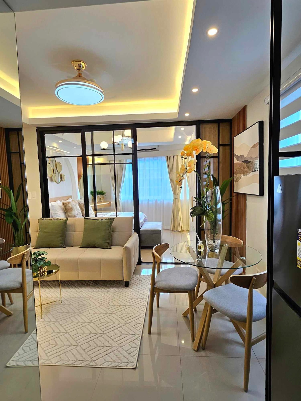 Καλώς ήρθατε στο CIRQ Studio στο Eton Emerald Lofts. Αυτή η ολοκαίνουργια μονάδα διαμερίσματος τύπου σοφίτας 40 τ.μ. βρίσκεται στην καρδιά της επιχειρηματικής περιοχής Ortigas και απέχει μόλις 4 λεπτά με τα πόδια από το Robinsons Galleria. Το κύριο θέμα και η έμπνευση αυτού του διαμερίσματος είναι το Japandi Modern hotel-luxe με μοντέρνα έπιπλα και διακόσμηση από τα μέσα του αιώνα. Ουδέτεροι τόνοι με συνδυασμό σκούρων ξύλινων υφών με πινελιές μπλε τιτανίου και χρυσών φωτιστικών που κάνουν κάθε γωνιά του διαμερίσματος έτοιμη για το Insta-gram. :)