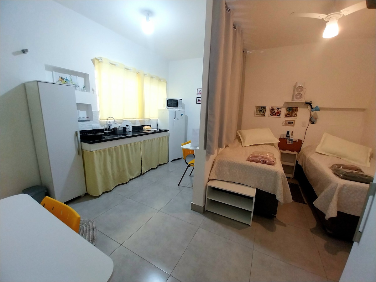 Πλήρης στούντιο, με κλιματισμό, πολύ ζεστό. Κοντά στο BOS, στο PUC και σε άλλα νοσοκομεία, σταθμούς λεωφορείων, στο κέντρο της πόλης, στα τερματικά λεωφορείων, εμπορικά κέντρα, ζωολογικό κήπο κλπ. Διαθέτει δωρεάν πρόσβαση στο διαδίκτυο, Smart TV με αρθρωτή βάση, κουζίνα εξοπλισμένη με τα βασικά σκεύη, ηλεκτρική κουζίνα 2 εστιών, έπιπλα σχεδιασμένα για την απόλυτη άνεση του επισκέπτη. Παρέχουμε κλινοσκεπάσματα και πετσέτες. Για κρατήσεις άνω των 15 ημερών, αφήνουμε 1 επιπλέον σετ κλινοσκεπασμάτων και πετσετών. Το διαμέρισμα δεν διαθέτει γκαράζ.