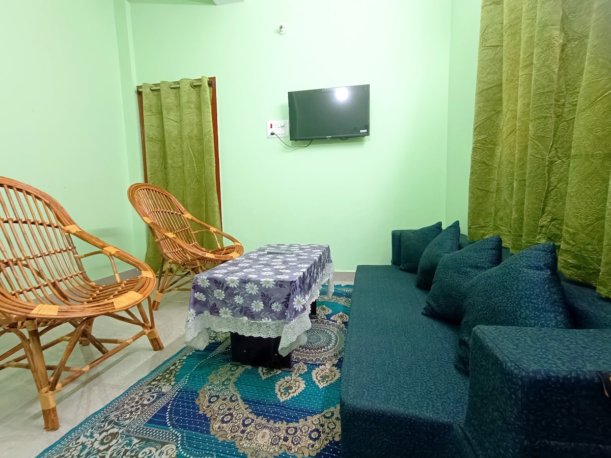 Ξεχάστε τις ανησυχίες σας σε αυτόν τον ευρύχωρο και καθαρό χώρο."Ένα σπίτι μακριά από το σπίτι σας". Αυτό το άνετο διαμέρισμα σε νεόκτιστο διαμέρισμα απέχει 5 λεπτά με τα πόδια από τον σιδηροδρομικό σταθμό patliputra. Είναι κατάλληλο για εργαζόμενους, σύντομη διαμονή για ιατρικούς ή επαγγελματικούς σκοπούς ή για διαμονές γενικού τουρισμού. Κλιματιστικά, θερμοπίδακες στα μπάνια, δύο μπαλκόνια, wifi και τηλεόραση κρεμασμένη στον τοίχο για μια άνετη διαμονή. Μια μοντέρνα κουζίνα με εστίες για αυτοεξυπηρέτηση προσθέτει γεύση στην αίσθηση του σπιτιού. Εικοσιτέσσερις ώρες φροντιστής στον χώρο.
