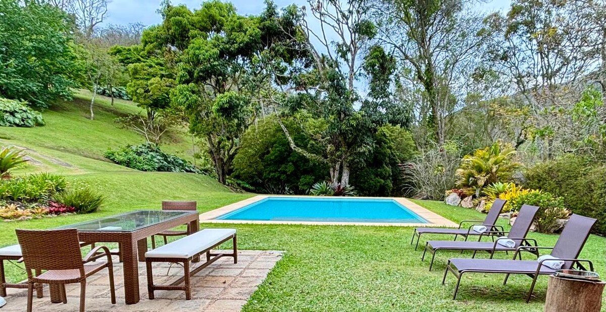 Um paraíso no meio da Mata Atlântica com cachoeiras e trilhas, a menos de duas horas do Rio de Janeiro. O aconchego de uma casa de fazenda, com 4 lindas suítes, que acomodam 8 pessoas, com todo o conforto da vida moderna, em meio à natureza exuberante da Reserva Biológica das Araras. O valor da nossa hospedagem muda conforme a quantidade de hóspedes. Ao realizar uma consulta ou reserva, por favor, informar a quantidade total de hóspedes. Não permitimos visitantes, festas e eventos