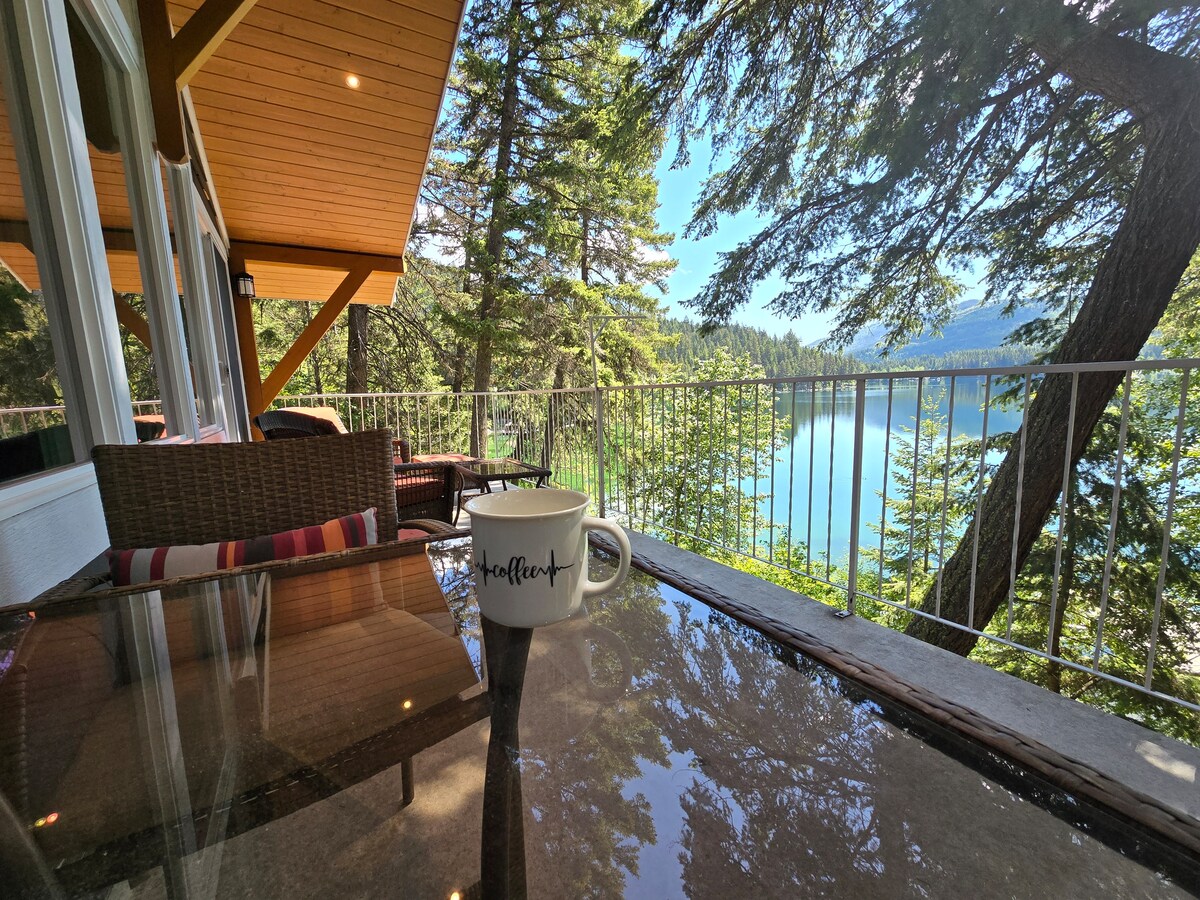 The Eagle's Nest is the perfect, romantic getaway. It offers the ultimate in relaxation, while you sit back and enjoy the crackling of the wood-burning fireplace, or enjoy a glass of wine while soaking in your private hot tub overlooking Shuswap Lake. Slightly tucked away in the forest, hidden from the road, you can sit and enjoy the stunning views from every room of the cabin. We provide everything you need for a relaxing getaway on Shuswap Lake - and we’re pet friendly!