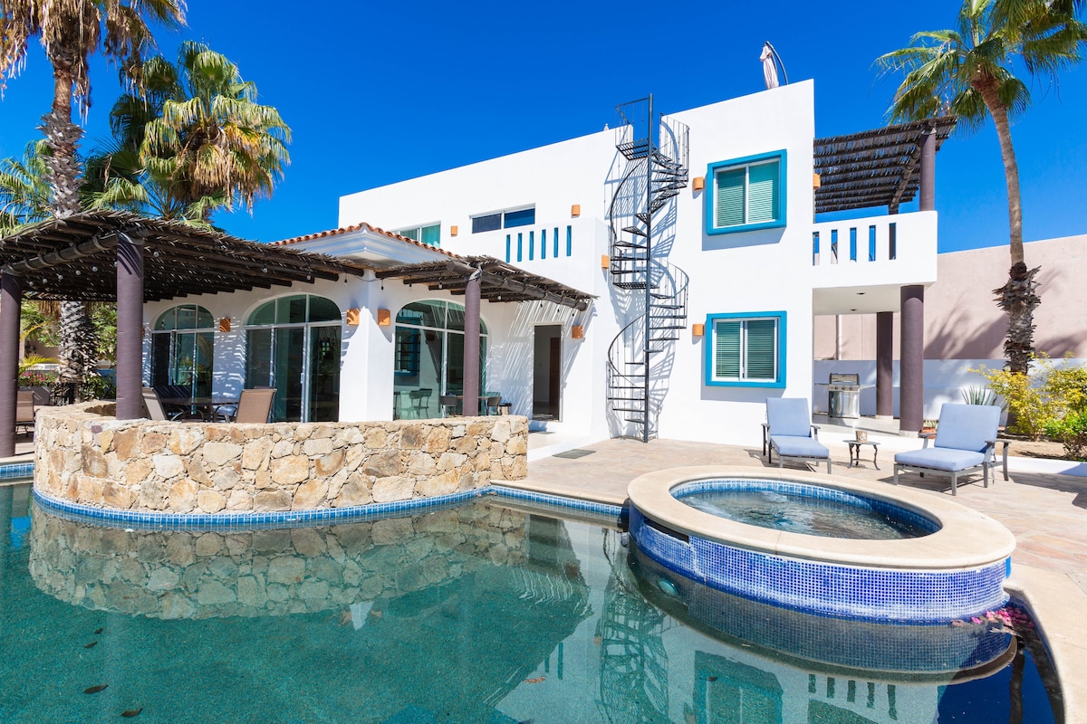 Luxury House with Pool, Jacuzzi, Walking distance to Beach, Rooftop, Terrace, Ocean and Los Arcos view. Experience luxury living in this exceptional 4-bedroom villa, just 5-minute to the beach and a brief 10- minute drive to the Marina. This jewel, perched high above the Sea of Cortez, boasts a private pool, a Jacuzzi, 3.5 bathrooms.