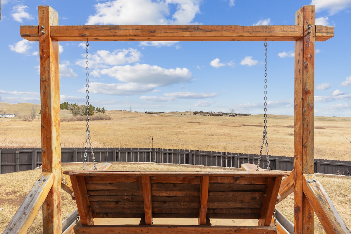 Γίνετε επισκέπτης μας σε 40 ιδιωτικά και πλήρως περιφραγμένα στρέμματα. Από όλα τα παράθυρα του σπιτιού μπορείτε να παρακολουθήσετε 2 άλογα και βοοειδή να βοσκούν μέσα από το λιβάδι. Τα βραδινά ηλιοβασιλέματα είναι μαγικά με ελάφια και γαλοπούλες να περιφέρονται. Χαλαρώστε κάτω από τα αστέρια στο τζάκι εξωτερικού χώρου μας (παρέχονται όλα τα απαραίτητα). Αφήστε τα παιδιά σας να τρέχουν ελεύθερα με νεροπίστολα και μια λίμνη με καταρράκτη για να ξαναγεμίσουν! Βρίσκεται ακριβώς έξω από τον αυτοκινητόδρομο 16 και απέχει μόνο 10 λεπτά από το κέντρο της πόλης Rapid City και 20 λεπτά από το όρος Rushmore!