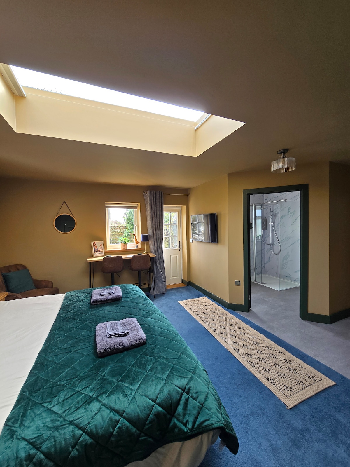 An extremley well presented, self contained studio flat, situated in a quiet area of Penryn, with excellent travel links to Falmouth and surrounding towns. Ideally placed for The University Campus, only a few minutes walk away. It is a stunning architect designed space flooded with natural light. Freshly decorated, newly furnished and equiped, it is new to the rental market this June. This is an ideal retreat for any couple providing an inspiring space in which to relax. Carefully Covid Cleaned.