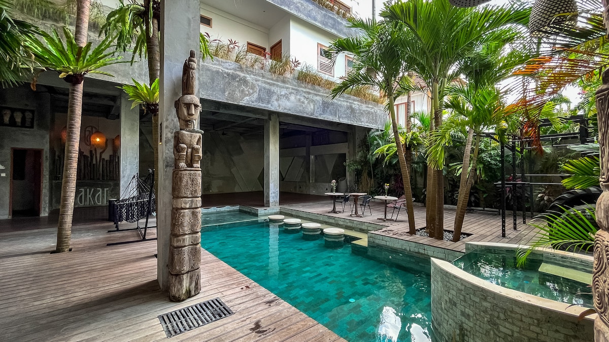 El Barrio is a one-of-a-kind boutique hotel nestled in the enchanting neighborhood of Umalas. Drawing inspiration from the captivating architecture of Mexico and the lively Favelas of Brazil, our hotel offers a truly immersive experience. Each of our cozy and vibrant bedrooms is a work of art, adorned with splashes of color and thoughtfully curated decor. Indulge in the shared pool area and bar, a vibrant oasis where you can cool off, soak up the sun, and enjoy a meal.