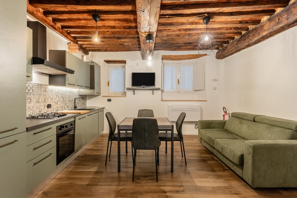 Alloggio al primo piano in centro di Montecatini Terme, una delle grandi città termali d'Europa riconosciute Patrimonio dell'Umanità Unesco nel 2021. Elegante e curato appartamento ristrutturato con balcone, composto da disimpegno d'entrata, zona giorno con cucina a vista, camera con balcone con affaccio sulla storica struttura Kursaal in zona pedonale di Corso Roma e da Gennaio 2025 bagno e doccia nuovi. WiFi libero, working-friendly per i viaggiatori d’affari. Posto auto coperto custodito.