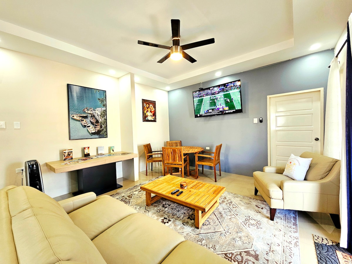 Χαλαρώστε σε μια όαση στιλ και άνεσης σε αυτόν τον χώρο που βρίσκεται κεντρικά. Μόλις 7 λεπτά από το αεροδρόμιο, το εμπορικό κέντρο Trincity και άλλες εμπορικές περιοχές. Ιδανικό για επαγγελματικά ταξίδια και διακοπές με ζευγάρια/φίλους. Αποδράστε στο μοντέρνο υπνοδωμάτιο Boho Master, με το πολυτελές μπάνιο Ensuite Bath, ή πιείτε το αγαπημένο σας ποτό από το μίνι μας κελάρι. Σχεδιασμένο με πλήρως εξοπλισμένη κουζίνα από ανοξείδωτο ατσάλι για να ετοιμάσετε τα αγαπημένα σας πιάτα. Χαλαρώστε στο άνετο αίθριό μας και ψήστε τα σνακ σας στο τζακιού μας.