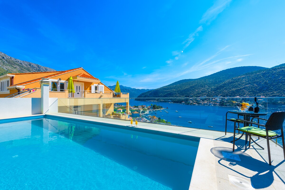Σε ένα μικρό μέρος μόλις λίγα λεπτά από την ιστορική πόλη του Ντουμρόβνικ βρίσκεται αυτό το νέο και πλήρως εξοπλισμένο διαμέρισμα με πισίνα ιδανικό για διακοπές μιας οικογένειας ή ζευγαριών. Το διαμέρισμα προσφέρει υπέροχη θέα στη θάλασσα.