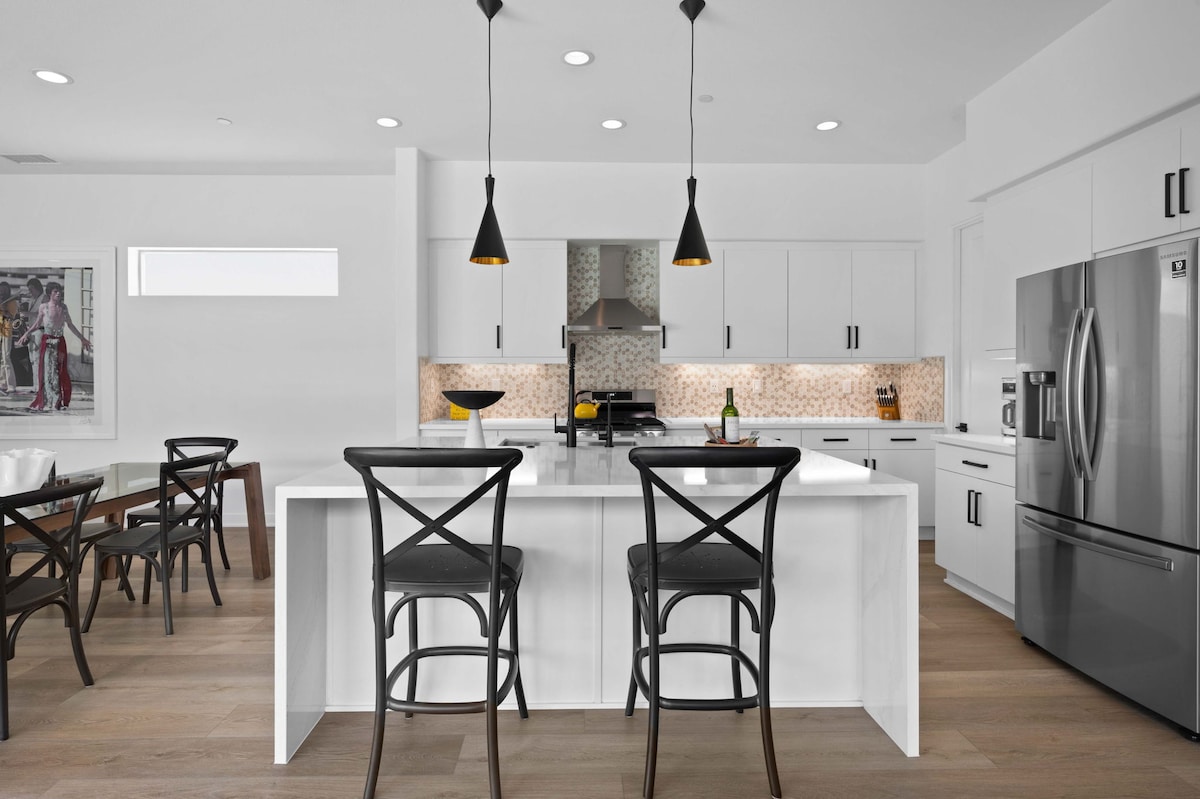 Καλώς ήρθατε στο WECasa @ PGA WEST Signature, ένα κομψό, ολοκαίνουργιο εξοχικό σπίτι 3 υπνοδωματίων στην καρδιά της Λα Κίντα της Καλιφόρνια, μόλις λίγα λεπτά από τα γήπεδα γκολφ Coachella, Stagecoach και PGA West παγκόσμιας κλάσης. Σχεδιασμένη για άνεση και πολυτέλεια, αυτή η μοντέρνα απόδραση είναι ιδανική για οικογένειες, παίκτες γκολφ, επαγγελματίες ταξιδιώτες και επισκέπτες φεστιβάλ που αναζητούν ήλιο, θέα στο βουνό και ανέσεις σε στυλ θέρετρου. Κάντε κράτηση για την πολυτελή απόδρασή σας στο WECasa @ PGA WEST σήμερα — όπου η γοητεία της ερήμου συναντά τη σύγχρονη άνεση.