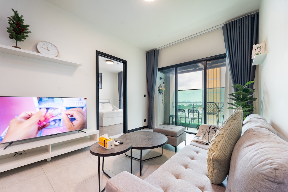 Luxury 5* The Opera Residence Corner Apartment by ChiHome - River View Bason District 1, The LandMark 81, The Galleria, The Mett Office, District 2 Sala Thiso Mall. - Πύργος Β, Σκάλα, Επίπεδο 1x μονάδα 10 - Μέγεθος: 70 τ.μ. (γωνιακή μονάδα) - Περιλαμβάνει 2 υπνοδωμάτια, 2WC, άνετα για διαμονή 2-4 ατόμων. - Έξυπνη τηλεόραση 65 ιντσών με Netflix και YouTube - Καναπές, πολυθρόνα, τραπέζι τσαγιού. - Τραπέζι με 4 καρέκλες. - Πλήρη μαγειρικά σκεύη - Διατίθεται ασύρματο ίντερνετ υψηλής ταχύτητας. • Κλιματισμό για ολόκληρο το σπίτι. - Πρόσβαση 24 ώρες το 24-ωρο στο κτίριο