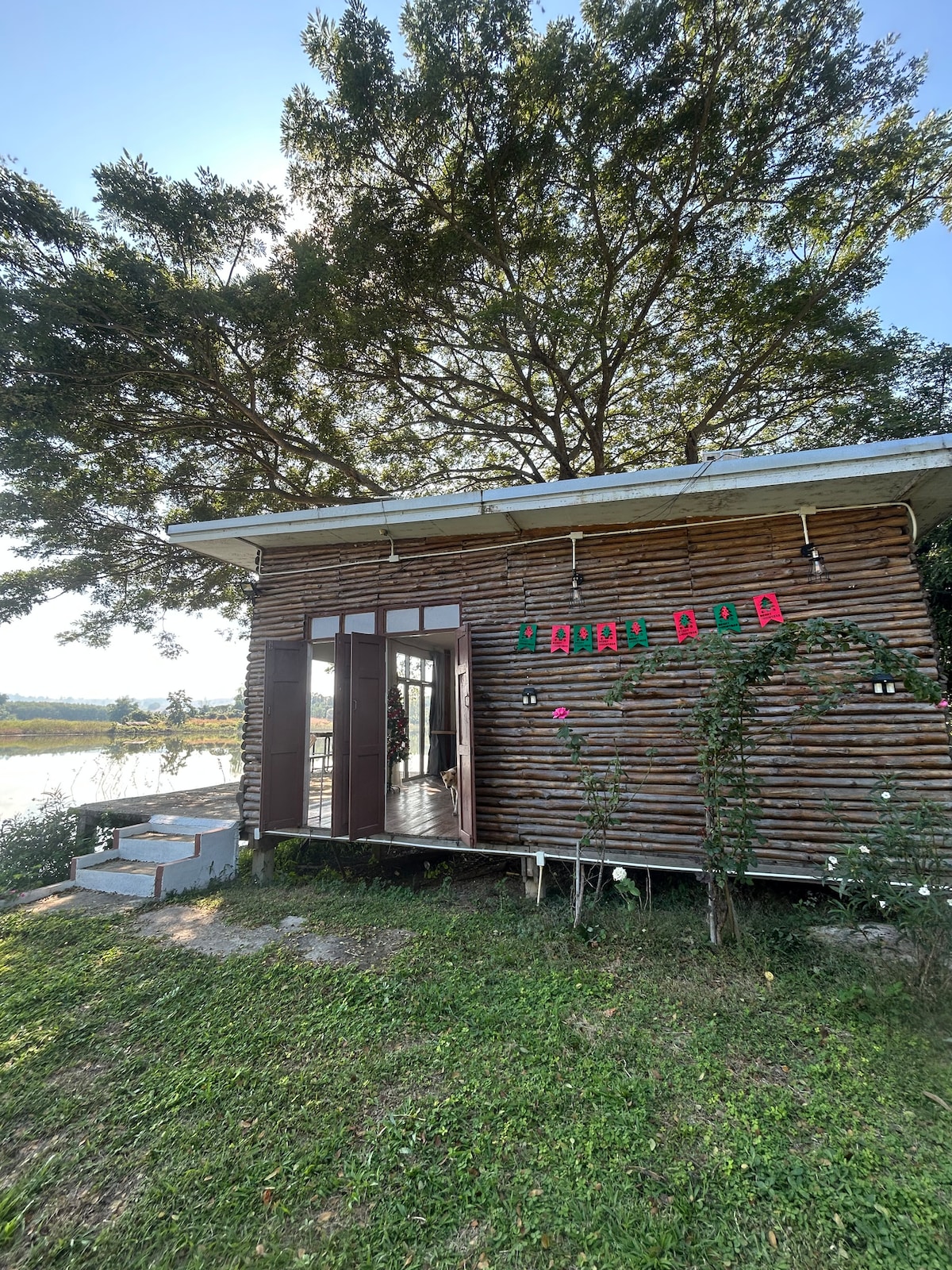 Ελάτε μόνοι ή ως ζευγάρι για να απολαύσετε την ξύλινη καμπίνα μας με όλα τα νέα εσωτερικά. Βρίσκεται σε ένα μεγάλο οικόπεδο που περιβάλλεται από 2 λίμνες με ψάρια. Μια ανοιχτή ταϊλανδέζικη κουζίνα. Ξεχωριστή εσωτερική ντουζιέρα και τουαλέτα, στεγασμένο πάρκινγκ για μικρό αυτοκίνητο ή μοτοσικλέτες. Καταπληκτική θέα σε όλη την περιοχή του Φαν, Τσιάνγκ Ράι που αποπνέει ηρεμία. Ως μπόνους μπορείτε να χρησιμοποιήσετε την πισίνα των ιδιοκτητών στην ιδιωτική κατοικία τους. Ο διάσημος "Λευκός ναός" απέχει μόλις 45 λεπτά με το αυτοκίνητο και η πόλη/το αεροδρόμιο Τσιάνγκ Ράι 1 ώρα. Νέο: Σάουνα!
