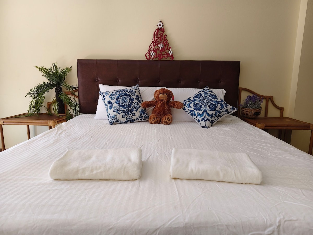 这是一套全新的两卧室公寓,位于海滨的绝佳地段。享有宽敞的客厅和用餐区,大型落地窗,将窗外美丽的景色尽收眼底。家具端庄而高雅,设计师精心打造的细节让人感觉放松和舒适。主卧室和卫生间宽敞而精致,夜晚躺在露台上的秋千椅里遥望星空,感受来自遥远星球的问候。次卧室配有一张舒适的双人床,两厅两卧两卫,非常适合家庭长短期居住,以及朋友之间的短期聚会。厨房设备齐全,可以满足您的三餐烹饪需求。公寓还配有无线网络,以及免费停车位。需要向您特别介绍的,本公寓与罗勇万豪酒店共享美丽而巨大的园林及泳池,与壮阔的沙滩近在咫尺,每晚均可沐浴在壮丽的海上日落余晖之中。入住的客人还可以会员资格享用万豪的餐厅、咖啡厅及酒吧。这是一个完美的度假居所,让您在舒适的环境中享受壮丽的海景和绝佳的位置。