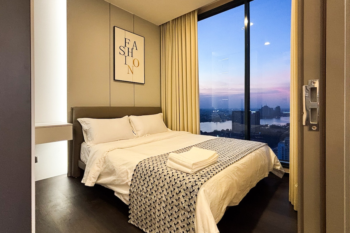 Have fun with the whole family at this stylish place. Apartment in the city center, close to many amenities. Easy to go to Sirikit Park, easy to go to Asiatique, just cross the bridge, just a minute to the tourist attractions, Sukhumvit Road. In addition, under the building, there is a 7-Eleven and a Tops Supermarket for you 24 hours a day.