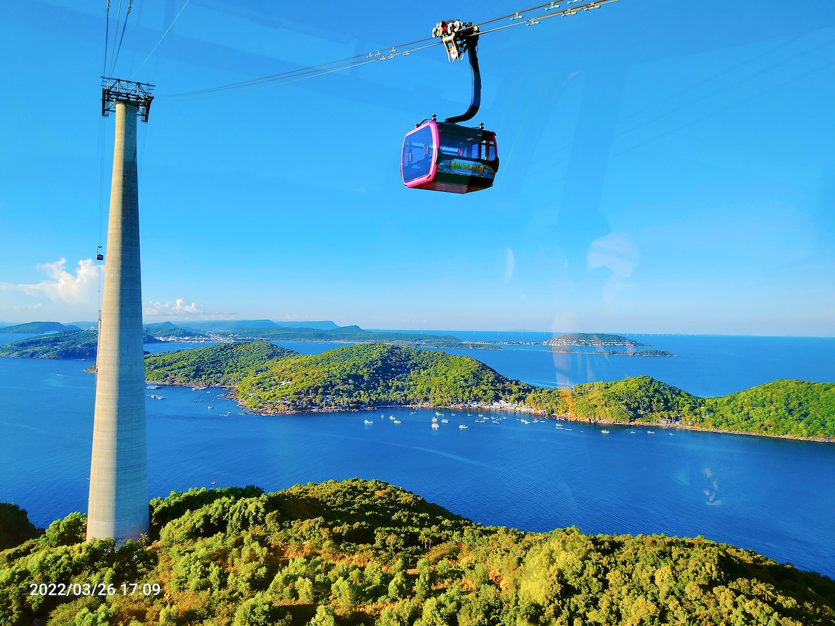 Ιδανικό διαμέρισμα στην καρδιά του Φου Κουόκ - Βρίσκεται σε έναν λόφο, με ηρεμία για ξεκούραστο ύπνο και καλή θέα στη θάλασσα. - 5 λεπτά με τα πόδια (180 μέτρα) από την παραλία, 700 μέτρα από τη νυχτερινή αγορά, πολλά εστιατόρια, σπα και γυμναστήρια σε κοντινή απόσταση. - Πλήρως εξοπλισμένο: κουζίνα, πλυντήριο ρούχων με σαπούνι, καφετιέρα (από κόκκους καφέ) και καθαρό πόσιμο νερό, όλα δωρεάν. - Ταράτσα με μπάρμπεκιου, γιόγκα και χώρο χαλάρωσης. - Ίντερνετ υψηλής ταχυτητας, ιδανικό για διαδικτυακή εργασία. Θα χαρώ πολύ να σας βοηθήσω ανά πάσα στιγμή!