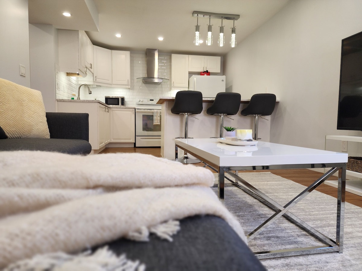 1 Bedroom • 1.5 Bathrooms • Private Entire Unit Newly renovated and quiet, just minutes from Hwy 401 and local restaurants. Highlights • Private self check-in • Driveway parking for 1 car • Private sauna • 55 Inch TV with Netflix Amenities Fresh towels, linens, tooth brushes & pastes, hairdryer, home essentials, shower essentials, and extra pillows/towels on request. Spotless home, quick replies, and your comfort guaranteed - book with confidence.