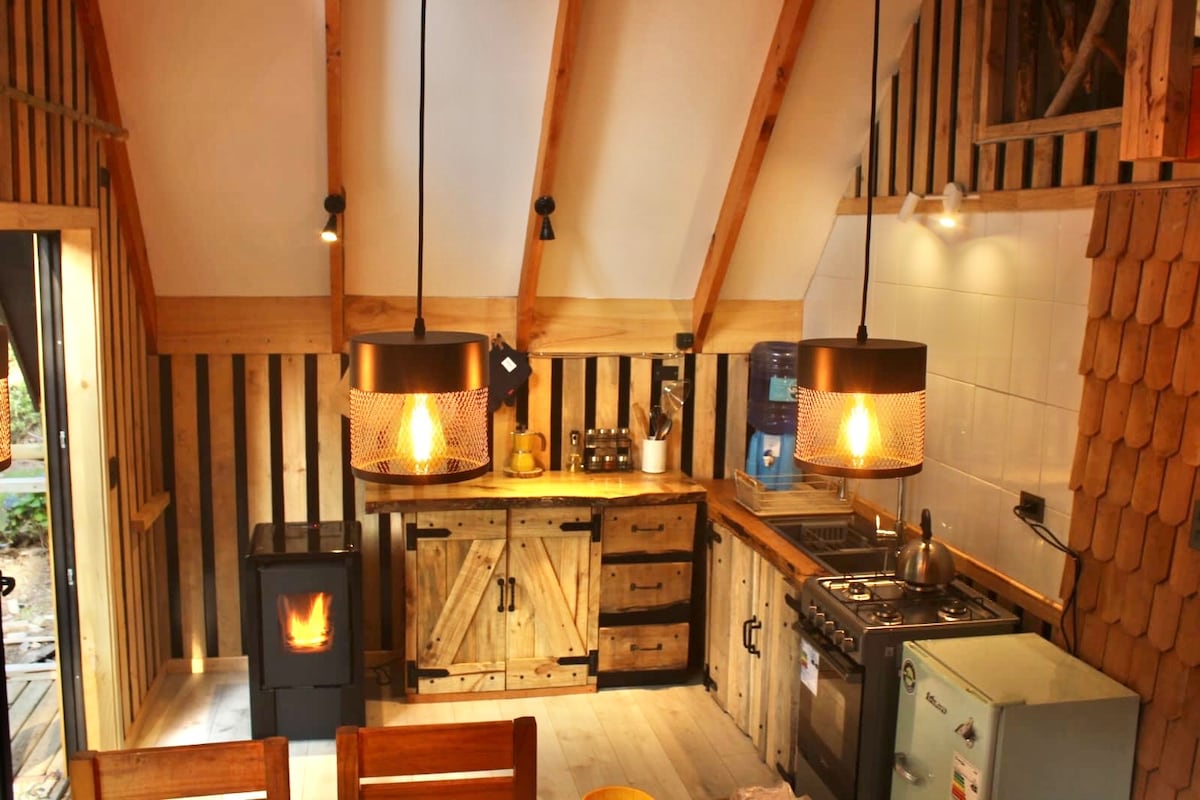 A 30 km de Pucón, este acogedor loft es una de tres auténticas cabañas alpinas con tinaja (costo adicional) en Coilaco Alto, un entorno cordillerano rodeado de bosque nativo y riachuelos. Es una zona llena de cultura rural. El espacio cuenta con wifi y es ideal para quienes desean conectar con la naturaleza. A 45 min de Pucón. A 47 min de Curarrehue A 30 min de Caburgua (playas) A 35 min de Huife (centros termales) A 30 min (tres saltos, parque kulatraiken) A 45 min (mirador Laguna el león)