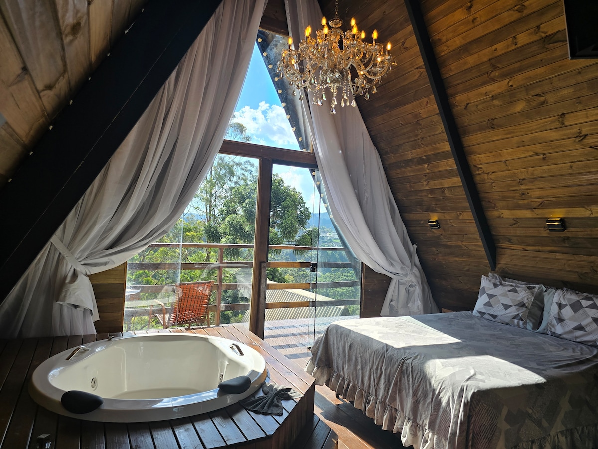 Ξεκουραστείτε σε ένα καταφύγιο με θέα στα βουνά. Ιδανικό για όσους θέλουν να αναπληρώσουν τις δυνάμεις τους, να γιορτάσουν την αγάπη με ένα ποτήρι κρασί ή ακόμα και να εργαστούν εξ αποστάσεως με ένα καλό φλιτζάνι καφέ! 18 λεπτά από το κέντρο του Σαν Αντόνιο ντο Πινιάλ (12 χλμ.) 45 λεπτά από το Campos do Jordão. ΣΗΜΕΙΩΣΗ 1: Χώρος σε χωματόδρομο: Μόνο 3 λεπτά ΣΗΜΕΙΩΣΗ 2: Από την πύλη μέχρι το ξυλόσπιτο έχουμε μια απότομη, αλλά πλακόστρωτη, ανηφόρα. Ελέγξτε τα ελαστικά σας για τις βροχερές ημέρες. ΣΗΜΕΙΩΣΗ 3: Δεν σερβίρουμε γεύματα