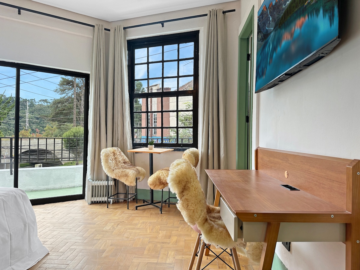 Προσφέρουμε μια διαμονή σε αυτό το άνετο σπίτι, το οποίο διαθέτει τρεις σουίτες με μπαλκόνι, κουζίνα, σαλόνι με τζάκι, πλυντήριο ρούχων και χώρο στάθμευσης με ηλεκτρικό φορτιστή. Στα 1800 μέτρα πάνω από την επιφάνεια της θάλασσας, φανταστείτε τον εαυτό σας σε ένα ελβετικό σπίτι με πανοραμική θέα στα βουνά και τα δέντρα Araucaria. Το τζάκι σας προσκαλεί σε άνετες στιγμές στο σαλόνι, με το αγαπημένο σας πρόγραμμα στο παρασκήνιο. Το σούρουπο, επιτρέψτε στον εαυτό σας να απολαύσει μαγικές στιγμές γύρω από τη φωτιά κάτω από έναν έναστρο ουρανό.