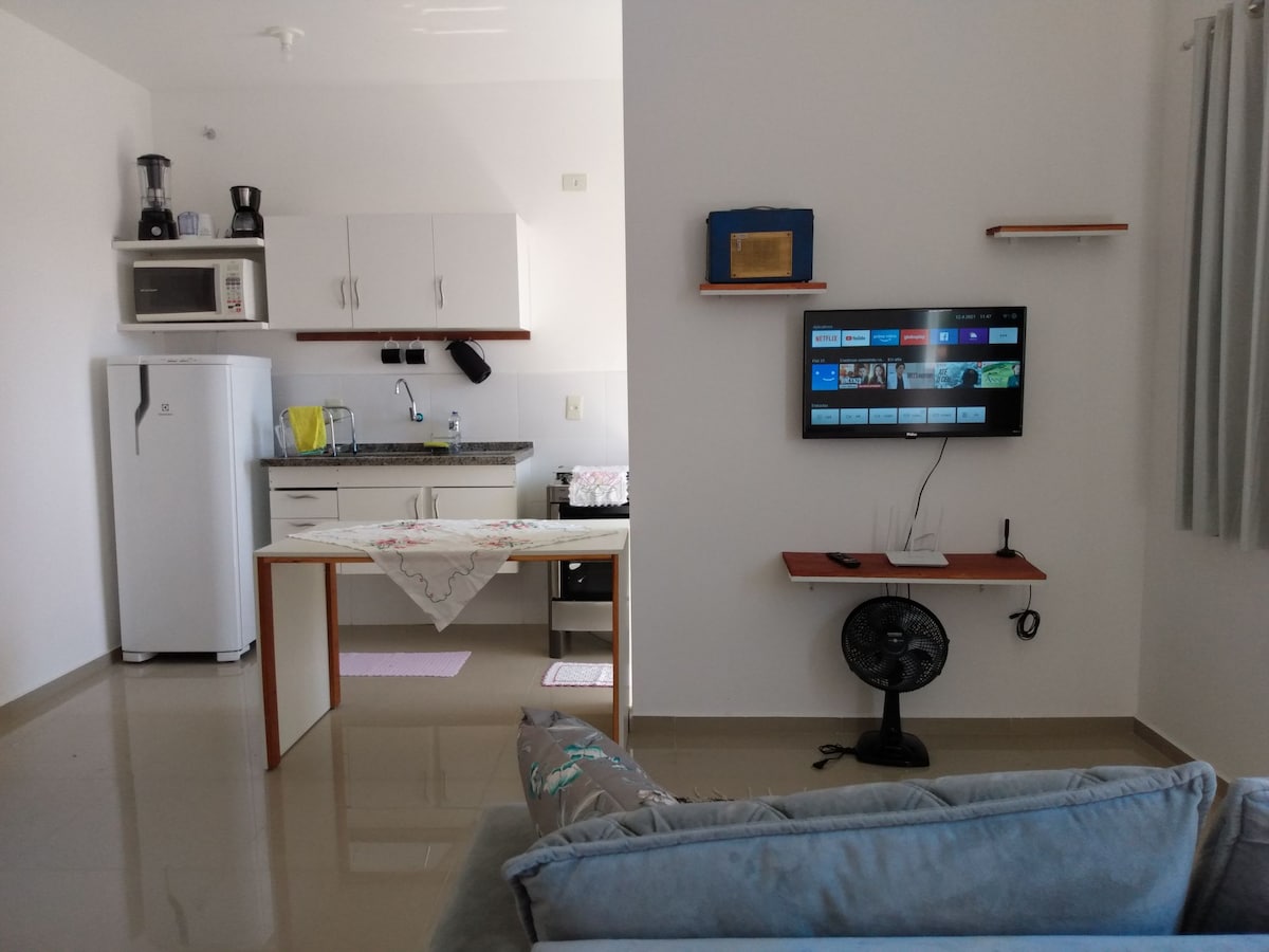 Ένα όμορφο διαμέρισμα, πολύ καλά τοποθετημένο, κοντά στην κεντρική λεωφόρο και με εύκολη πρόσβαση στο Καπιβάρι (3 λεπτά με το αυτοκίνητο, 14 λεπτά με τα πόδια, 1,2 χλμ μακριά). Το διαμέρισμα διαθέτει εξοπλισμένη κουζίνα, τραπεζαρία και σαλόνι, υπνοδωμάτιο και μπάνιο. Wi-Fi υψηλής ταχύτητας και καλωδιακή τηλεόραση. Θέλετε να περπατήσετε; Απολαύστε τη κεντρική λεωφόρο της πόλης, που βρίσκεται σε απόσταση μικρότερη από 100 μέτρα, για να περπατήσετε μέσα στη μεγάλη φύση του Campos do Jordão. Διαβάστε τις αξιολογήσεις μας και δείτε πόσο ξεχωριστός είναι ο χώρος μας