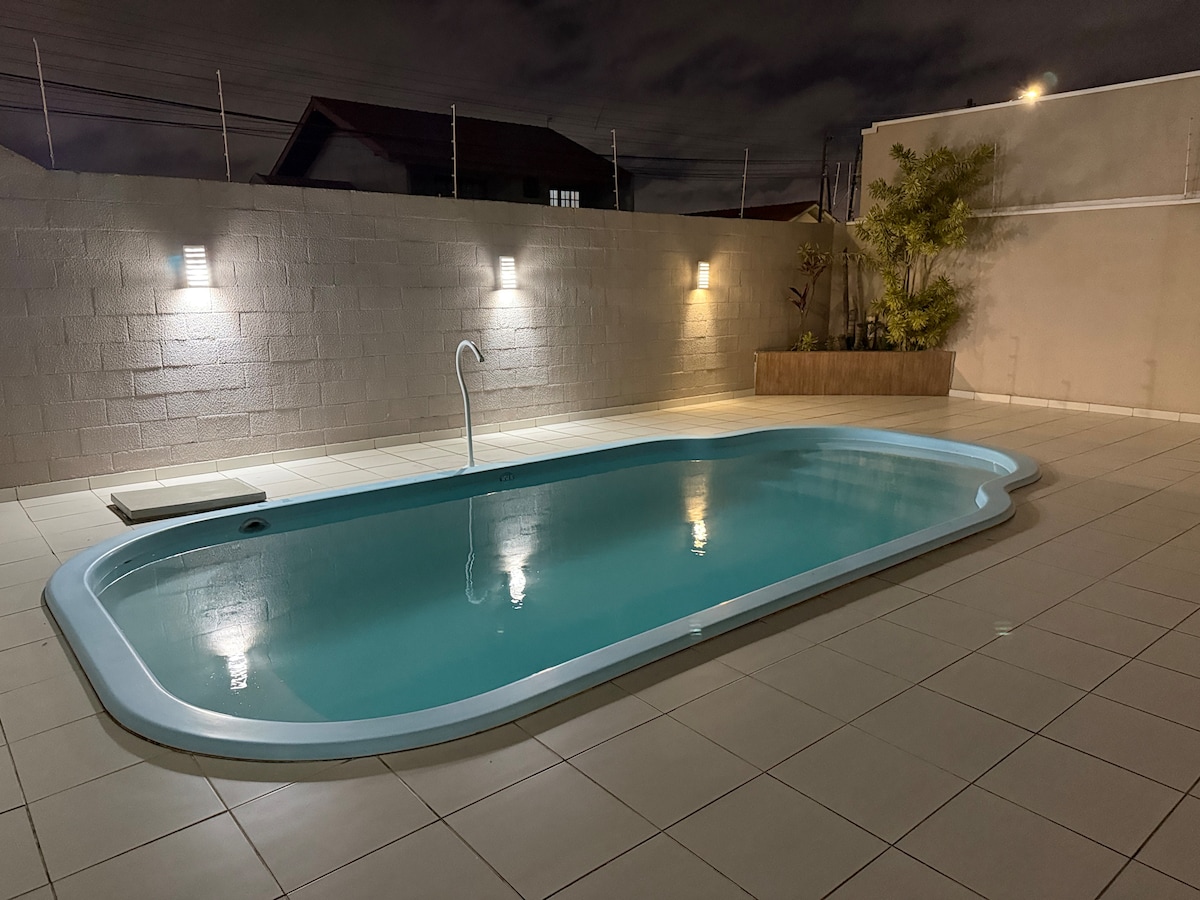 Μπορούμε να φιλοξενήσουμε έως και 10 επισκέπτες, με καλυμμένο χώρο στάθμευσης για δύο οχήματα, ευρυζωνική σύνδεση στο διαδίκτυο οπτικών ινών και wi-fi. Εξοπλισμένο με τηλεόραση LG Smart TV 49”, καλωδιακή τηλεόραση, συμπεριλαμβανομένων των καναλιών HBO & Telecine και μια μπάρα ήχου JBL με Bluetooth. Μοναδικό στιλ και προσωπικότητα σε έναν άφθονο χώρο με άνετους κήπους, το % {smartophere είναι ένα από τα καλύτερα στην ηρεμία και την ιδιωτικότητα μόλις 15 λεπτά από το κέντρο της Curitiba. Αν είναι απαραίτητο, μπορούμε να παρέχουμε πρόσβαση σε ένα επιπλέον εξωτερικό μπάνιο.