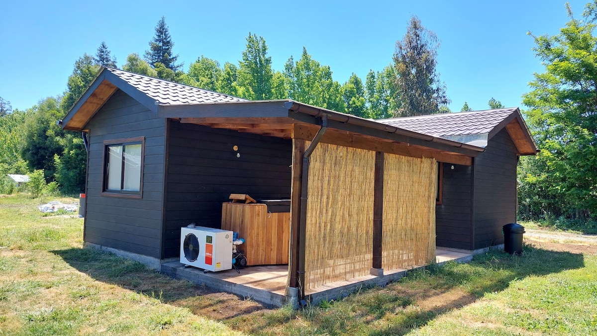Μοναδικό ξυλόσπιτο μέσα σε μισό εκτάριο (5.000 τ.μ.) ιδιωτικού φυσικού δάσους με μικρά μονοπάτια, ΠΙΣΙΝΑ (καλοκαίρι) και παιχνίδια ΑΠΟΚΛΕΙΣΤΙΚΗΣ ΧΡΗΣΗΣ για τους επισκέπτες. WIFI οπτικών ινών/ 2 SMART TV(HD c Pack DISNEY+/ESPN ETC.)/ DirectTV / Πόσιμο νερό / Φυσικό αέριο / Καυσόξυλα / Πετσέτες / Σεντόνια / Πλυντήριο ρούχων Χωρητικότητα για 4 άτομα. 1 Δ. με διπλό κρεβάτι και 1 Δ. με 2 μονά κρεβάτια, τραπεζαρία-κουζίνα (πλήρως εξοπλισμένη), ξυλόσομπα, 1 μπάνιο, μπάρμπεκιου με σχάρα. Κοντά στο κέντρο του Los Lleuques και 25 χλμ. από το Nevados de Chillán