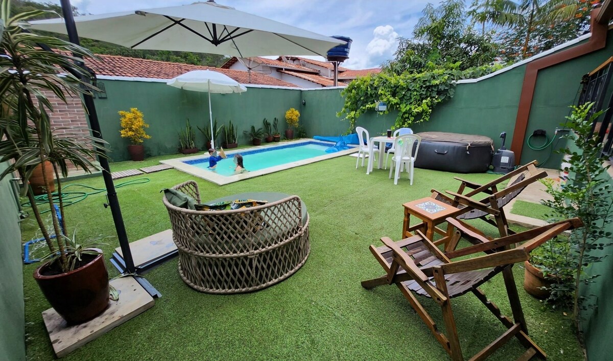 Είστε στο σπίτι σας, απολαύστε την ηρεμία και τις φυσικές και ιστορικές ομορφιές αυτής της υπέροχης πόλης που είναι η Pirenópolis. 2 χλμ. από την εκκλησία Rosário (6 λεπτά με το αυτοκίνητο) που βρίσκεται σε μια πολύ ήσυχη και ασφαλή γειτονιά, το Park Jardim Brasília. 3 υπνοδωμάτια, ένα σουίτα με ένα διπλό κρεβάτι, ένα δεύτερο υπνοδωμάτιο με ένα διπλό κρεβάτι και το τρίτο με ένα διπλό κρεβάτι (2 μονά κρεβάτια), όλα με ένα γραφείο και Wi-Fi. Στο σαλόνι υπάρχει επίσης ένας διπλός καναπές-κρεβάτι και μπορούμε να παρέχουμε μια φορητή κούνια με στρώμα.