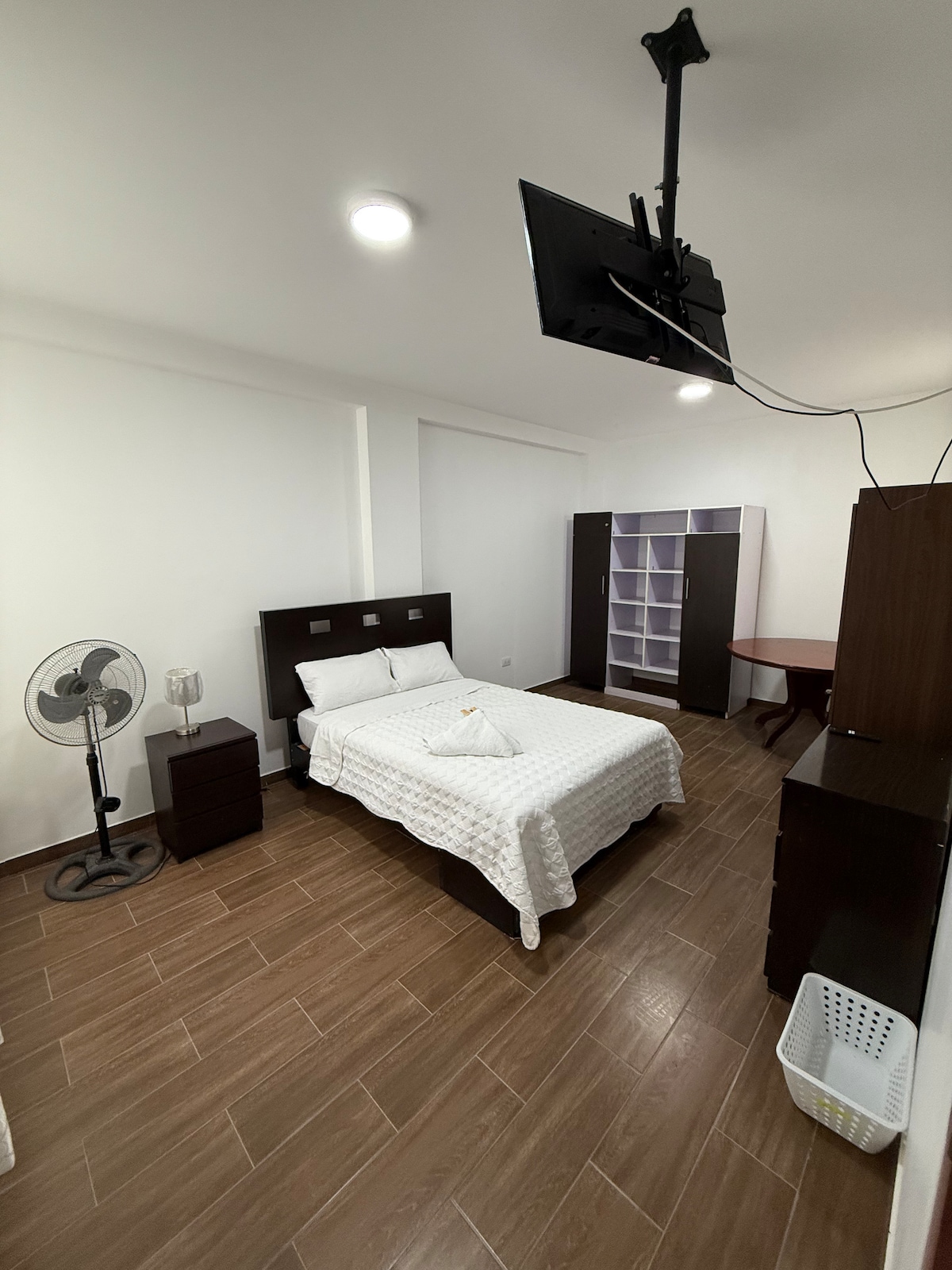 Esta cómoda habitación en el centro de Pisco, a 5 minutos de la playa, te espera Cuenta con baño completo propio con agua caliente, TV con cable, ingreso independiente y wifi. Te esperamos! (El precio es por habitación, max 2 personas x hab.)