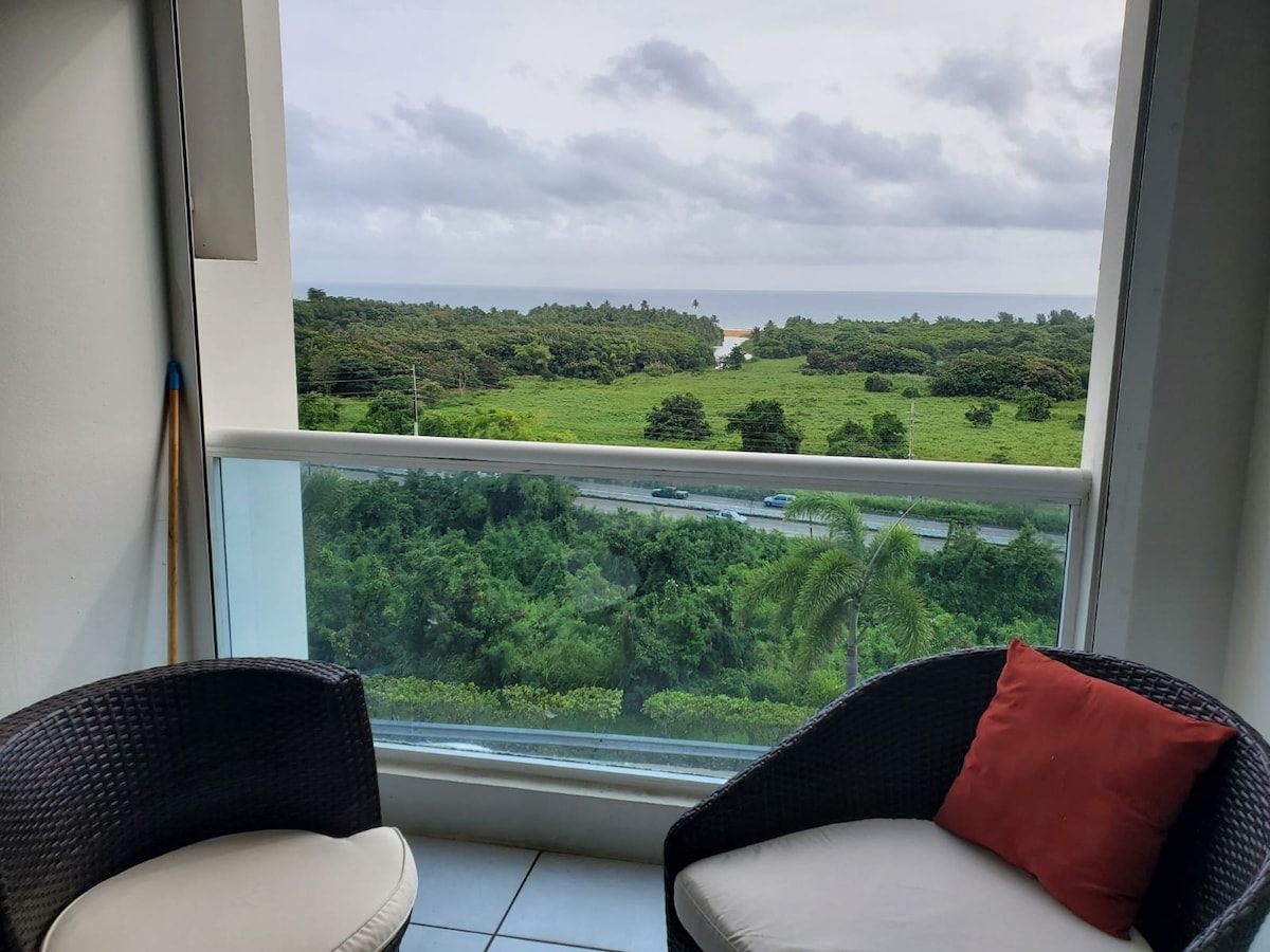 Relájate en esta escapada única y tranquila. Bello apartamento con balcon una Vista Impresionante. 1 Estacionamiento, 2 Habitaciones (1 recamara cama queen, 2nda recamara cama litera full/twin, 1 twin , ambos con A/C, 1 baño, cocina equipada, Roku TV, internet, Piscina comun (cerrada por el momento), Acceso a la playa desde el Condominio Cerca de los Kioskos de Luquillo, El Yunque, Hacienda Carabali Farmacias, Fast Food, aeropuerto y mas...