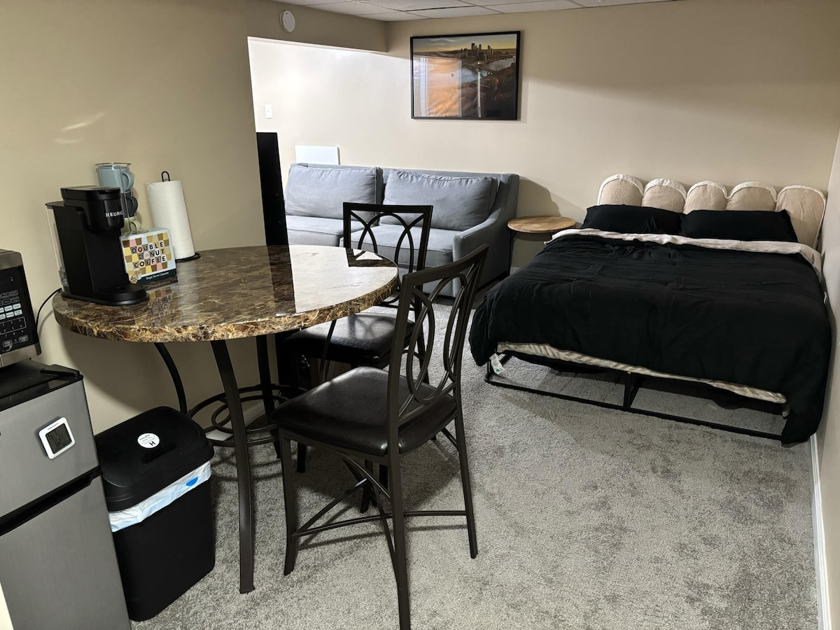 Αυτό το μίνι στούντιο είναι για όσους χρειάζονται ένα τακτοποιημένο, καθαρό, δροσερό μέρος για να μείνουν. Διαθέτει ένα νέο υπέρδιπλο κρεβάτι, καναπέ-κρεβάτι, μικρή κουζίνα και μπάνιο με ιδιωτική είσοδο στον 3ο όροφο ενός όμορφου αρχοντικού του Πίτσμπουργκ του 1890. Είναι το μέγεθος ενός μεγάλου δωματίου και λειτουργεί πολύ καλά με τους επισκέπτες που σχεδιάζουν να εργαστούν ή να απολαύσουν την πόλη και να επιστρέψουν σε ένα ασφαλές, καθαρό και άνετο μέρος για να ανανεωθούν για τη νύχτα(δεν είναι κατάλληλο για παιδιά κάτω των 10 ετών).