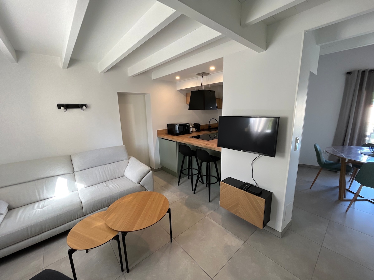 400 μέτρα από τα καταστήματα και την αγορά του St Denis, ελάτε να απολαύσετε τις διακοπές σας στο κομψό νέο μας σπίτι, με ταξινόμηση 4*, με πολυτελήπτες ανέσεις, που μπορεί να φιλοξενήσει 7 άτομα (+1 μωρό). Το κατάλυμα βρίσκεται σε μια μικρή ήσυχη οικιστική περιοχή, αποτελείται από 3 υπνοδωμάτια και ένα μεγάλο κλιματιζόμενο σαλόνι, ανοιχτό προς τα έξω, με πρόσβαση στον κήπο και τη βεράντα χωρίς να υπάρχει κάποιο άλλο κτίριο απέναντι. Και για να διασκεδάσετε με τους φίλους ή την οικογένειά σας, υπάρχει γήπεδο για πέτανκ και τραπέζι πινγκ πονγκ