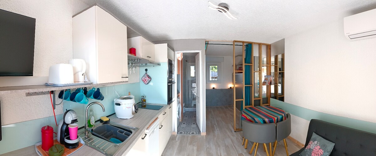 Αφήστε τον εαυτό σας να μπει στον πειρασμό και τολμήστε το υπέροχο του Gruissan αποκλειστικά για 2 άτομα, για μια στιγμή χαλάρωσης απολαμβάνοντας το μπάνιο και τη σάουνα. Σε μια ήσυχη γειτονιά της πόλης, με το υπέρδιπλο κρεβάτι του. Το Lovely Gruissanais δεν είναι διαθέσιμο; Θυμηθείτε να δείτε το Le Lovely Narbonnais! Πρωινό συμπεριλαμβάνεται την πρώτη νύχτα. Βρίσκεστε 600 μέτρα από το λιμάνι, 1 χλμ από το ιστορικό κέντρο, 2 χλμ από την περίφημη παραλία των Chalets (Σαλέ). 15 χλμ από τη Narbonne (μεγάλοι μπουφέδες, αρένα, κέντρο της πόλης, αυτοκινητόδρομος