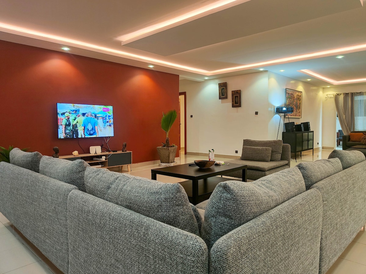 Καλώς ήρθατε στο κομψό, φωτεινό και ευάερο καταφύγιό σας στο Almadies. Ένα ευρύχωρο, φωτεινό διαμέρισμα 2 υπνοδωματίων και 3 μπάνιων σχεδιασμένο για άνεση, χαλάρωση και εύκολη διαβίωση. Γεμάτο φυσικό φως και δροσερό αεράκι από τον ωκεανό, αυτό το μοντέρνο κατάλυμα προσφέρει μια ζεστή αλλά εκλεπτυσμένη ατμόσφαιρα με έργα τέχνης εμπνευσμένα από την Αφρική, σύγχρονα έπιπλα και έναν φιλόξενο ανοιχτό χώρο καθιστικού, ιδανικό για χαλάρωση μετά από μια μέρα εξερεύνησης του Ντακάρ. Αυτό το κατάλυμα προσφέρει την τέλεια ισορροπία στυλ και λειτουργικότητας.