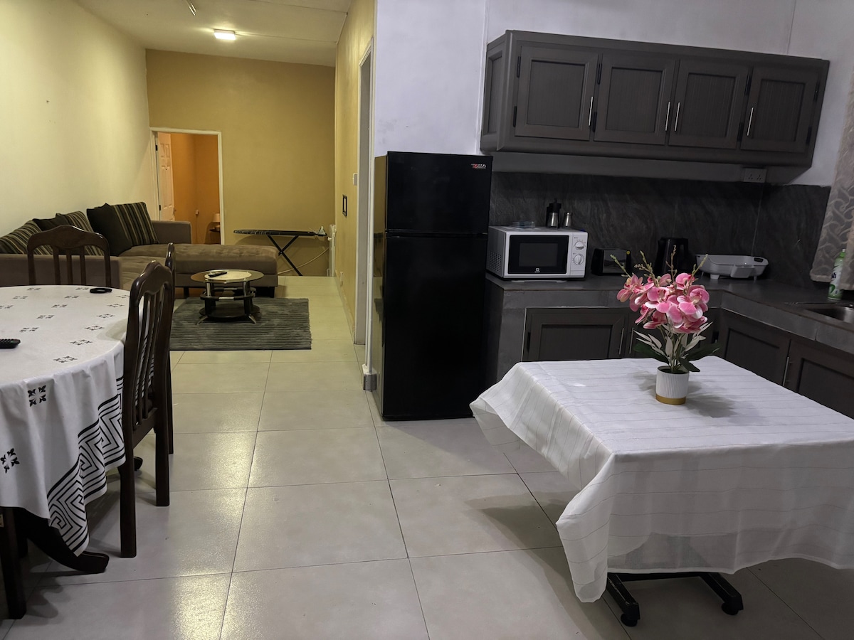 Welcome to your home away from home! This stylish and cozy apartment offers a contemporary design, perfect for relaxing or working remotely. Featuring a bright living space, a fully equipped dining area, and sleek track lighting for a warm ambiance. The bedroom is designed for restful nights, and the bathroom is elegantly fitted with modern amenities. Located in the heart of Ebene City, this space is ideal for both leisure and business travelers. Unwind in style and make your stay unforgettable!