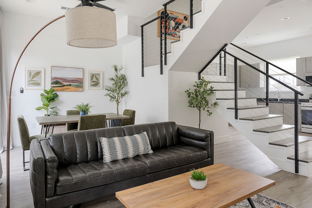 Get the best of urban living in this tucked away luxury townhouse! Enjoy everything from cooking your heart out in the fully equipped luxury kitchen, to kicking back in front of the 86” TV (YouTube TV, Netflix, Disney+), or just simply enjoy a cocktail on the back patio! Luxury linens (1200 thread-count sheets, RH towels, amazing mattresses), well equipped bathrooms, walk-in closet, etc. If business travel is your game, enjoy high speed WiFi and a full desk for your workspace!