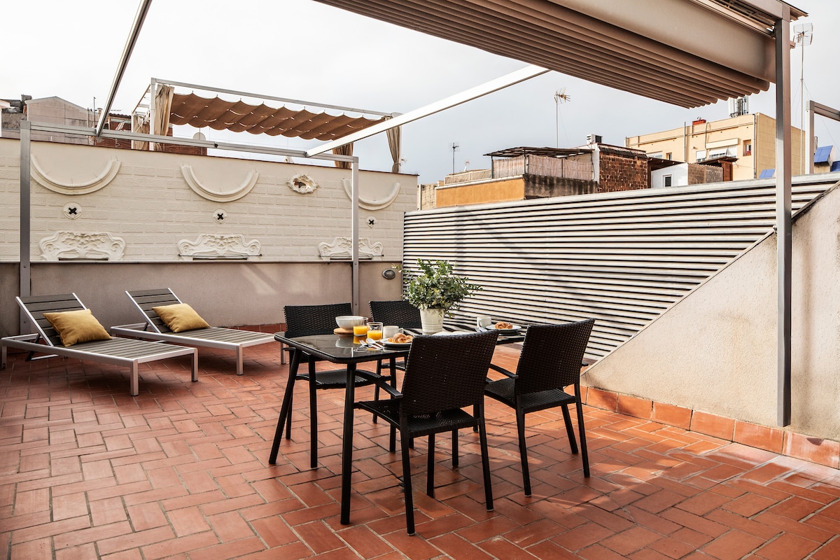 Το σπίτι σας με βεράντα, μόλις 8 λεπτά από την παραλία. Χαλαρώστε σε αυτό το άνετο διαμέρισμα που έχει σχεδιαστεί για να νιώθετε σαν στο σπίτι σας. Απολαύστε μια ιδιωτική βεράντα, ιδανική για ηλιόλουστα πρωινά ή δείπνο κάτω από τα αστέρια. Η παραλία είναι μόλις λίγα βήματα μακριά, πλήρως εξοπλισμένη κουζίνα, γρήγορο WiFi και ευέλικτη άφιξη. Ιδανική τοποθεσία κοντά σε εστιατόρια, καταστήματα και μέσα μεταφοράς. Παρέχονται πετσέτες και κλινοσκεπάσματα. Βοήθεια 24 ώρες το 24ωρο. Θα μοιραστώ μαζί σας τοπικές συμβουλές, ώστε να επωφεληθείτε όσο το δυνατόν περισσότερο από τη διαμονή σας. Ζήστε τη Βαρκελώνη σαν στο σπίτι σας!