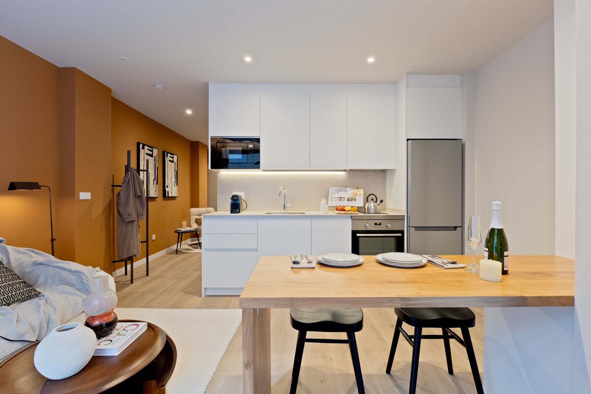 Stylish 100sqm loft with clean Nordic design and cosy 35m2 patio. The apartment is quiet, fully furnished with open living spaces, bright, perfect to enjoy with family or friends with a beautiful retreated patio where to lounge by day and by night. Located at only few min walking distance from the thriving Russafa area, the Túria Park, the Art and Science Museum and at 20 min walk from the old town. There is a SmartTV where you can use your Netflix and fast internet.
