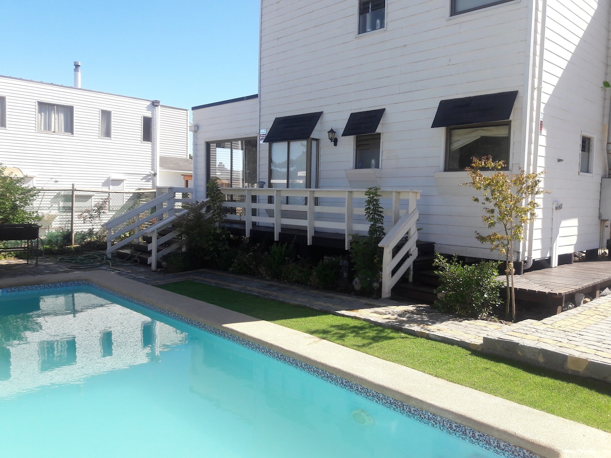 Εκπληκτικό σπίτι, με ένα τεράστιο σαλόνι και εκπληκτική θέα στον ωκεανό, χτισμένο από έναν διάσημο αρχιτέκτονα της Χιλής που είναι γνωστός για το κτίριο GAM στο κέντρο του Σαντιάγκο. Βρίσκεται στο Zapallar, 3300 τετραγωνικά πόδια, πισίνα, μπάρμπεκιου, 5 δωμάτια, 4 μπάνια(2 με ντους, 1 μπάνιο, 1 τζακούζι), χωρητικότητα 10 ατόμων, κεντρική θέρμανση, 2 ξύλινα τζάκια. Διατίθεται οικονόμος που μαγειρεύει αυθεντικά πιάτα από τη Χιλή και θα κάνει τη διαμονή σας πιο ευχάριστη. Η πρόωρη άφιξη ή η καθυστερημένη αναχώρηση είναι πάντα μια επιλογή.