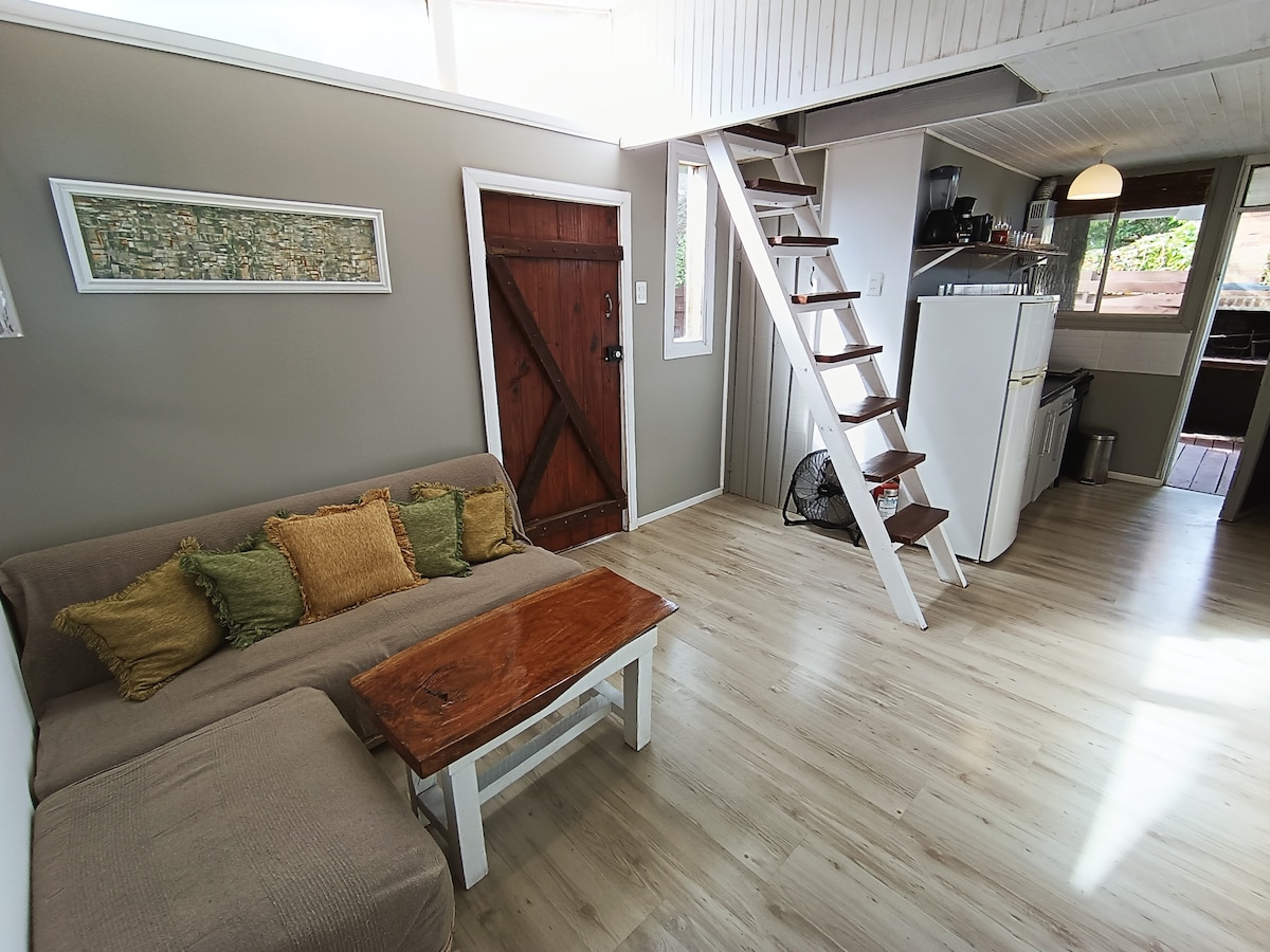 Φωτεινή ξύλινη καμπίνα με εκπληκτική θέα στην Playa de la Viuda. Ιδανική τοποθεσία σε λίγα βήματα από την παραλία και πολύ κοντά στο κέντρο της πόλης. Διαθέτει κλιματισμό, ξύλινη σόμπα υψηλής απόδοσης, πλήρη κουζίνα και Wi-Fi. Μέρος ενός συγκροτήματος μπουτίκ με τρεις ανεξάρτητες μονάδες, η καθεμία με δικό της ιδιωτικό μπάρμπεκιου και χώρο στάθμευσης, εξασφαλίζοντας ασφάλεια και ήρεμη διαμονή. Ακολουθήστε μας στα μέσα κοινωνικής δικτύωσης: Casitas Punta del Diablo. Ανυπομονούμε να σας φιλοξενήσουμε!