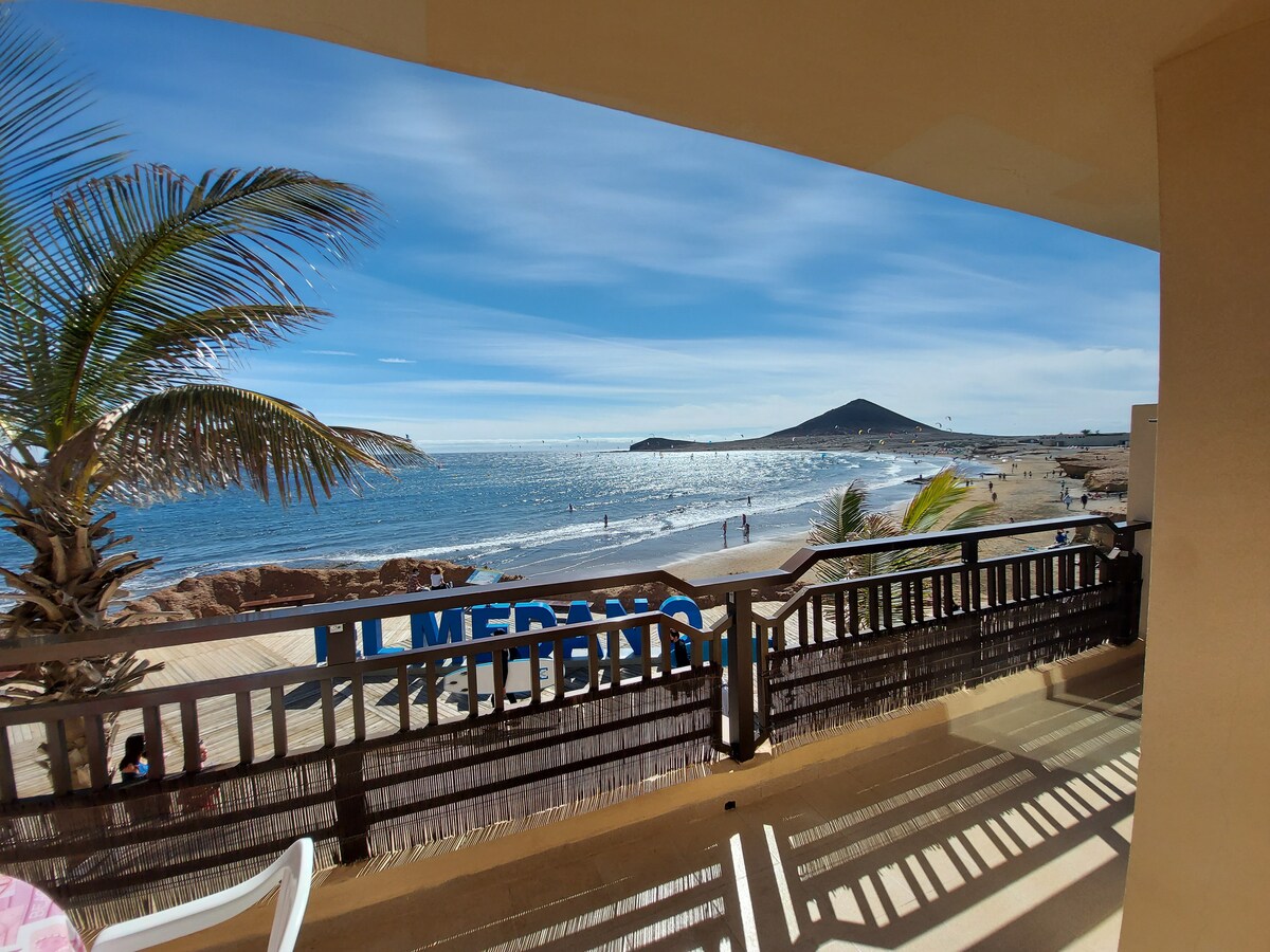 Όμορφο διαμέρισμα με θέα στη θάλασσα, με ιδανική τοποθεσία στο Médano, 5 μέτρα από την παραλία με τα πόδια, πρώτη γραμμή, με γυάλινα μπαλκόνια που ανοίγουν σε βεράντα, από το σαλόνι και το κύριο δωμάτιο. Μπορούν να φιλοξενήσουν 4 άτομα και ένα μωρό, καθώς διαθέτει ένα διπλό κρεβάτι, δύο μονά κρεβάτια, καναπέ-κρεβάτι και βρεφική κούνια. Εύκολη πρόσβαση στο κτίριο, με δύο εισόδους, μία στην παραλία και μία στο δρόμο.