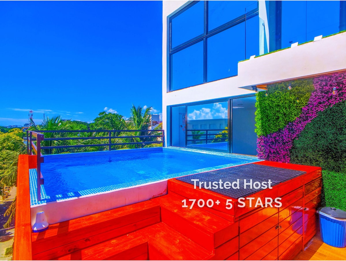 ★ READY FOR NOVEMBER 2025 - PLEASE READ EVERYTHING ★ Most desired area of Playa del Carmen on popular 38th Street between famous 5th Ave and the Beach. Peaceful. Great for families & large groups. ➤ Surrounded by restaurants & entertainment ➤ Steps from Beach or 5th Ave ➤ Walk Score 95/100 close to everything ➤ Elevator ➤ Private parking (1) ➤ Large jungle-view balcony w/ grill & hot tub ➤ Rooftop pool ➤ Equipped Kitchen ➤ Dining for 12 ➤ Full gym ➤ Washer & Dryer ➤ Fiber Optic WiFi (300+ Mbps)