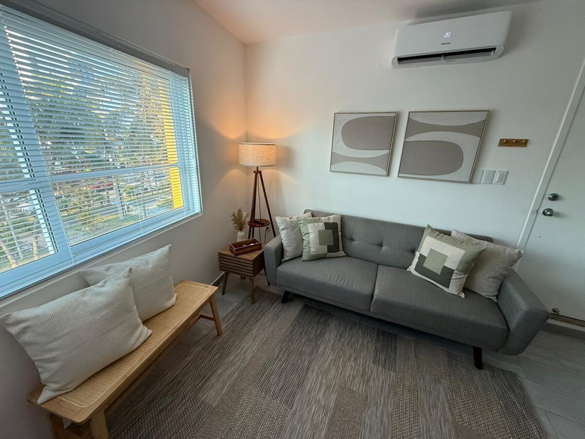 Μοντέρνα/πολυτελής μίνι σοφίτα στο Βερακρούς. 1 υπνοδωμάτιο με ένα διπλό κρεβάτι και ένα πλήρες μπάνιο. Σαλόνι με καναπέ-κρεβάτι, μίνι τραπεζαρία και 2 τηλεοράσεις. Εξοπλισμένη κουζίνα: μίνι μπαρ, καφετιέρα και φούρνος μικροκυμάτων. Πλήρως κλιματιζόμενο. Ανεξάρτητη πρόσβαση. Τοποθεσία: 1 τετράγωνο από τη λεωφόρο Martí, 2 τετράγωνα από τη λεωφόρο και την παραλία, 5 λεπτά από το Ενυδρείο, 12 λεπτά από το κέντρο της πόλης. Συμπεριλαμβάνονται κλινοσκεπάσματα και πετσέτες. Άνετο, ιδιωτικό και σε κεντρική τοποθεσία.