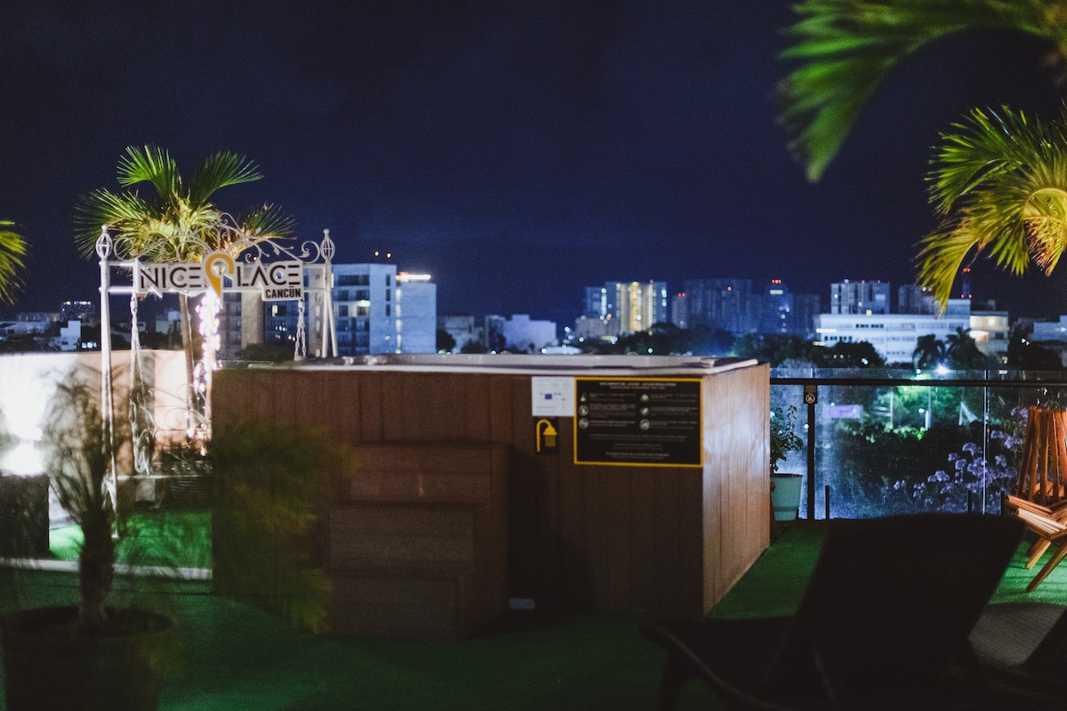🌴360 Penthouse boasts a private rooftop patio with a jacuzzi & lounge chairs. This is the apartment all the other guest are going envy. Our building, TAKH is located in Hotel Zone. Experience our 360 rooftop view that overlooks the cool blue Caribbean and the Nichupté Lagoon. Special features: 💦large rooftop pool with restrooms and outdoor showers. ✈Approx. 15 min. from Cancun airport. 🏖Across the street from the beach. 👔Laundry 🚗Parking garage This is the place to be in Cancun.
