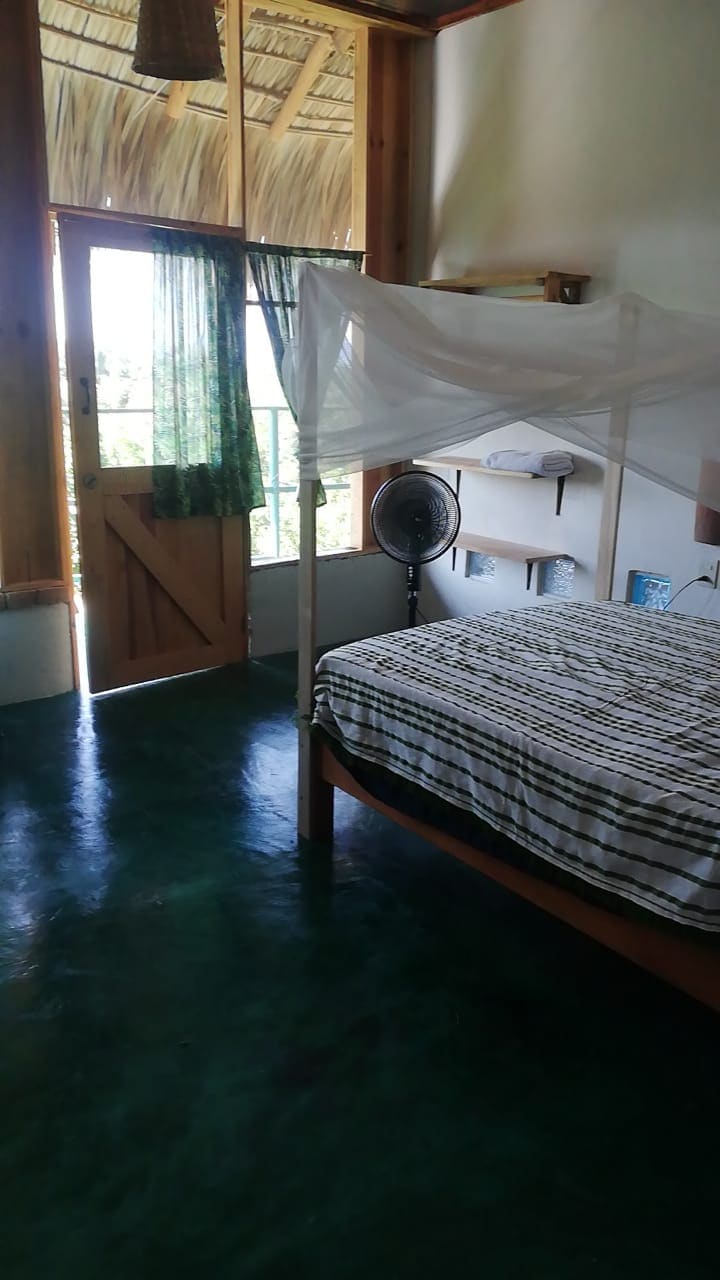 Όμορφο δωμάτιο με ένα όμορφο δέντρο μέσα. Θέλαμε να το σώσουμε, οπότε αν σας αρέσει η φύση αυτό το δωμάτιο είναι ιδανικό για εσάς. Διαθέτει 2 ανεμιστήρες, έναν ανεμιστήρα οροφής και έναν ανεμιστήρα δαπέδου, κλιματισμό και ένα μικρό μίνι μπαρ. Το κρεβάτι είναι ένα διπλό κρεβάτι με αφρό μνήμης. Μπάνιο και ντους έξω. Δεν κοινοποιείται σε κανέναν. Διαθέτουμε ίντερνετ Starlink. Δεν έχουμε ζεστό νερό.