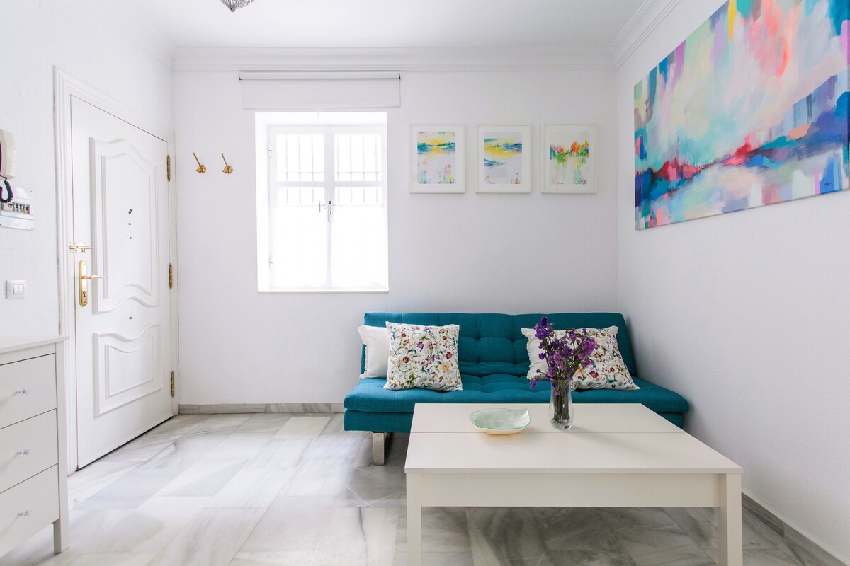 Καλώς ήρθατε στο αυθεντικό σπιτικό μου στη Σεβίλλη! Άνετο ισόγειο διαμέρισμα με ένα υπνοδωμάτιο, ένα σαλόνι με καναπέ-κρεβάτι και ένα γοητευτικό ιδιωτικό αίθριο γεμάτο φυτά. Κάθε γωνιά αποκαλύπτει μοναδικές λεπτομέρειες τοπικής χειροτεχνίας: νεομουδετζάρ πλακάκια, μαρμάρινες κολώνες, ένα αρχαίο κεραμικό αμφορέα και παραδοσιακά σιδηροκατασκευάσματα της Σεβίλλης. Βρίσκεται σε έναν ήσυχο πεζόδρομο στο ιστορικό κέντρο, μόλις 2 λεπτά από τον Καθεδρικό Ναό και το Αλκαζάρ. Καλωσορίζω προσωπικά κάθε επισκέπτη για να κάνω τη διαμονή του αξέχαστη.